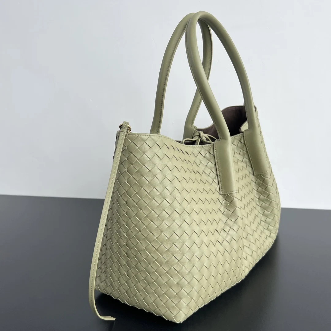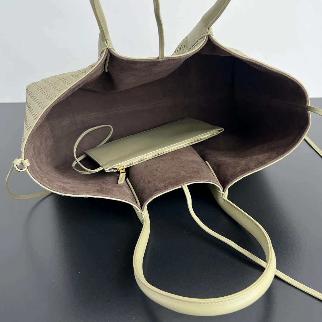 BV 2025 Early Spring Collection 817166 Pinacoteca Medium Tote Bag features classic Intrecciao woven calf leather on the front for understated luxury, and soft suede on the reverse for an instant switch to a relaxed, casual style. The spacious interior easily accommodates a laptop for commuting, and it also comes with a detachable pouch for added security. The intricate woven texture is irresistible, and most importantly, it s incredibly versatile. Come and get your new bag! Size: 23*43*14.5cm