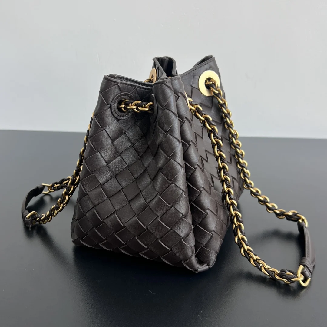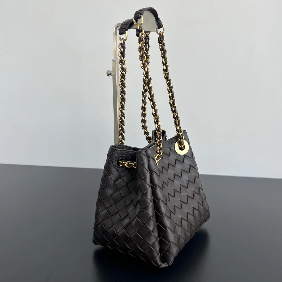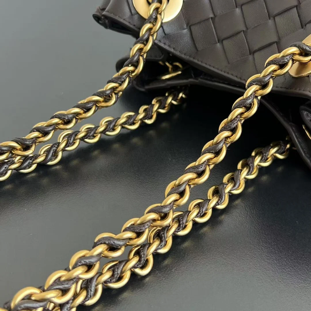 BV Early Spring New Chain Parachute 817175. The shoulder strap has been changed from the original leather strap to a chain, adding another intellectual and noble aesthetic. The entire piece of lambskin is folded into a parachute shape, combining the innovation of exquisite craftsmanship. Seemingly small, the bag can hold an entire day s essentials. It combines aesthetics and practicality, making it a versatile handbag for day and night. The key is its extreme versatility, looking great on anyone. Size: 21X17X16.5cm