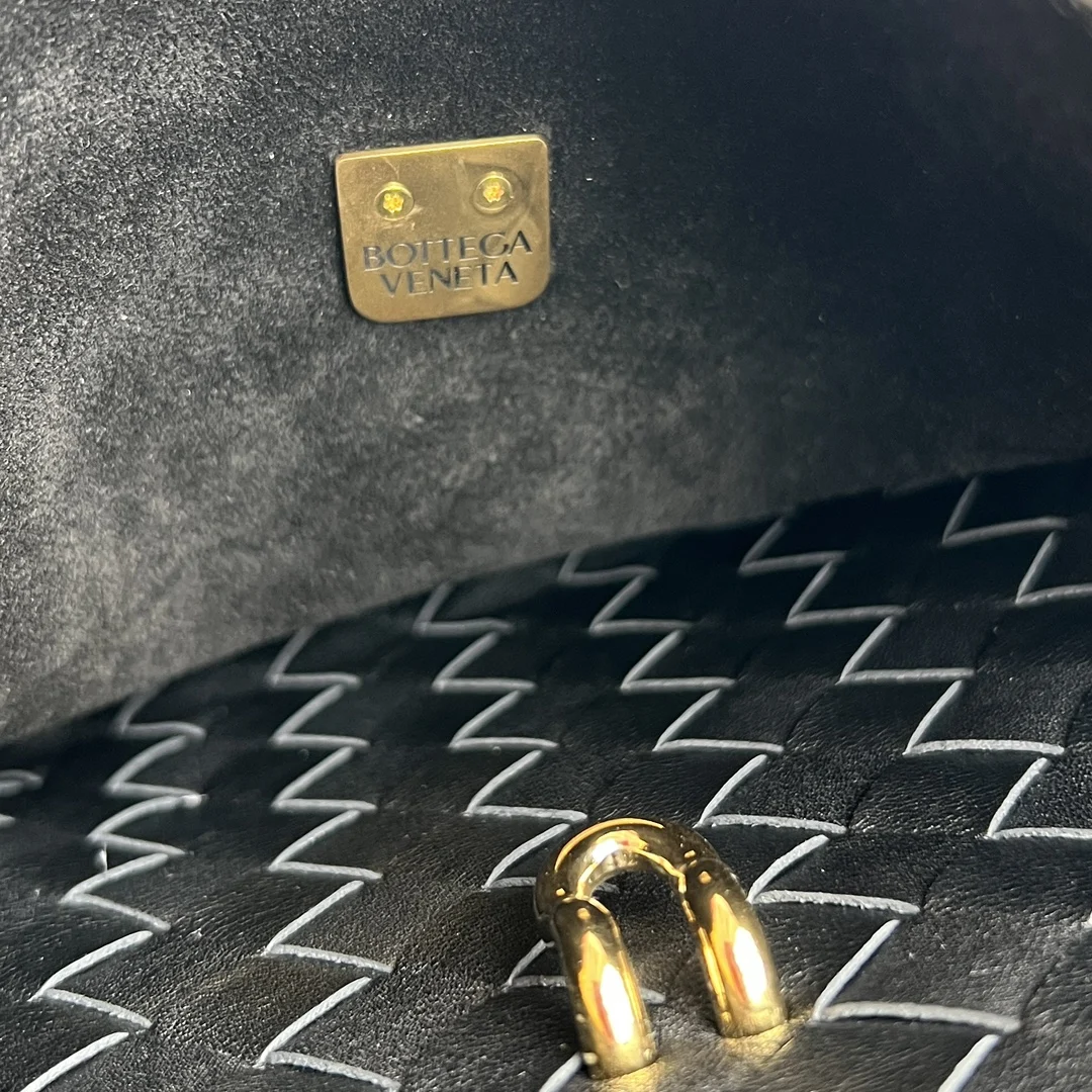 Bottega Veneta s new Ciao Ciao handbag 817231. Ciao Ciao, meaning hello and goodbye in Italian, embodies a relaxed and casual lifestyle. Crafted from Dutch Silky Calf leather, it offers a silky smooth touch. The leather is thick, and the suede interior is soft and comfortable. The relaxed feel of the smooth leather stacking, the iconic woven shoulder strap, and the perfect embellishment of gold hardware create a unique, casual yet refined, and highly practical bag. Carry Ciao Ciao with you to various occasions and be the most sophisticated version of yourself. Dimensions: 34x26x15.