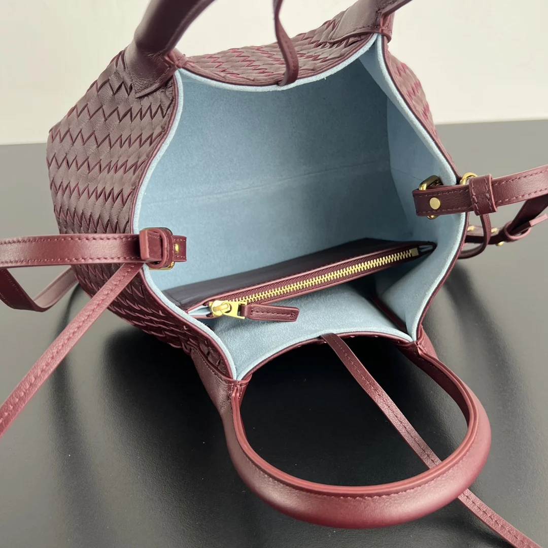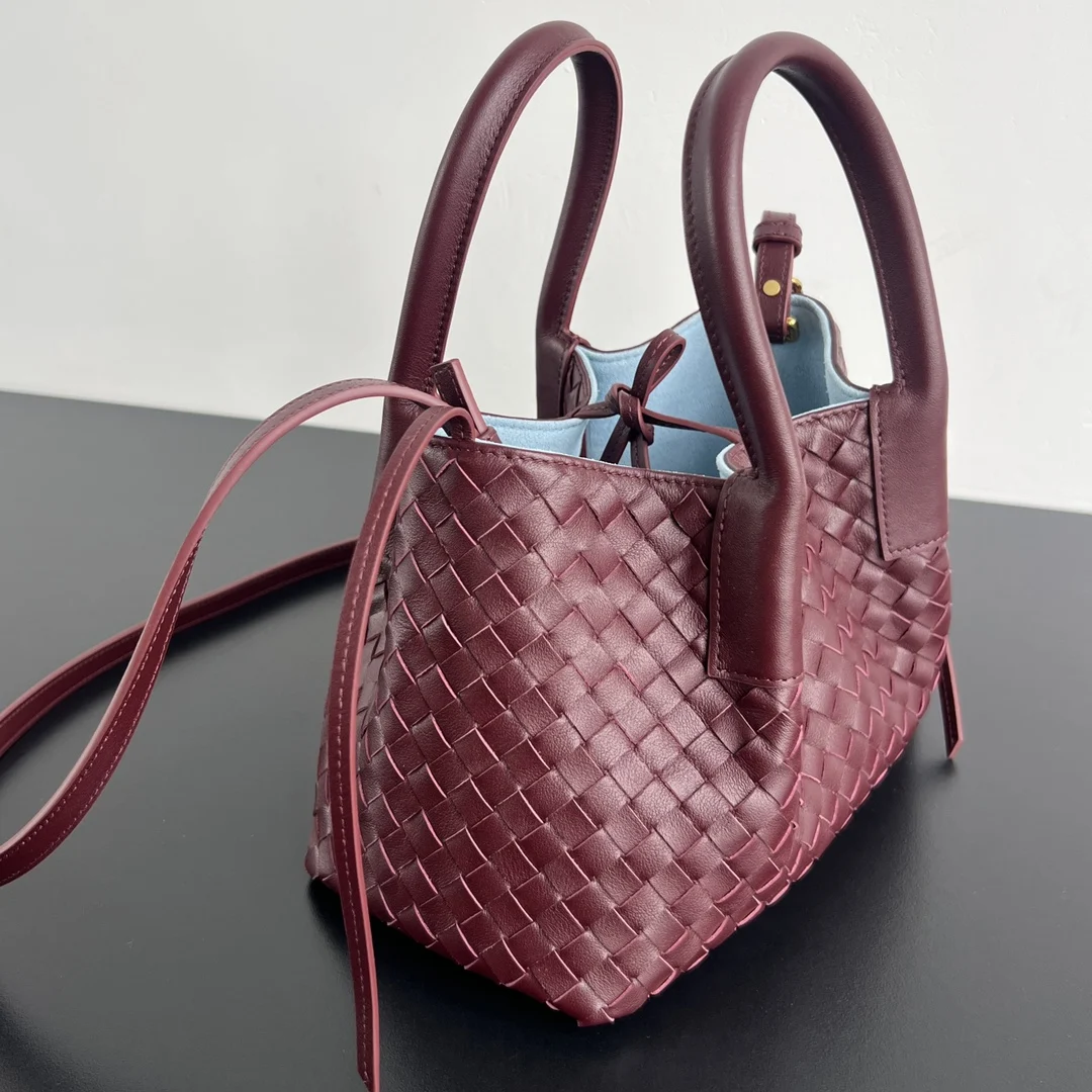 The BV 2025 Early Spring New 819004 Pinacoteca Small Tote Bag features BV s iconic woven craftsmanship. It has a reversible, smooth deerskin lining for dual-sided use, combining fa..