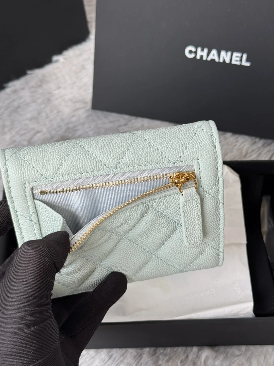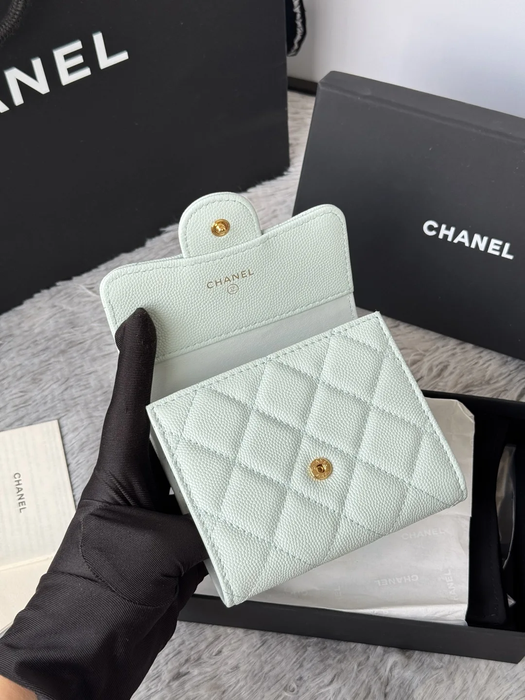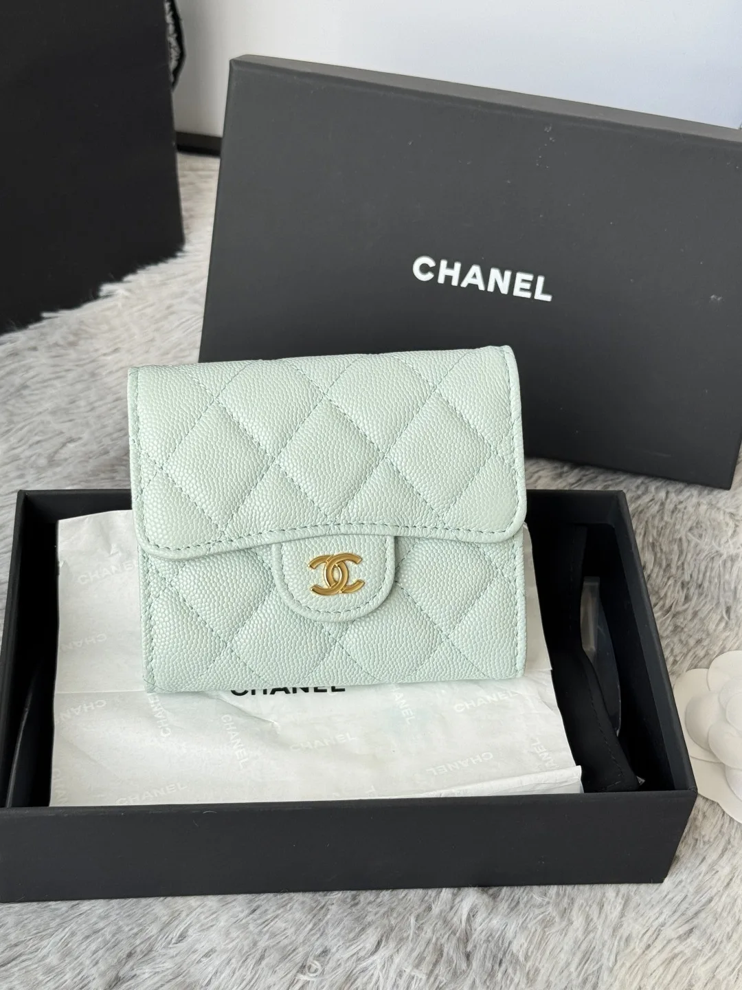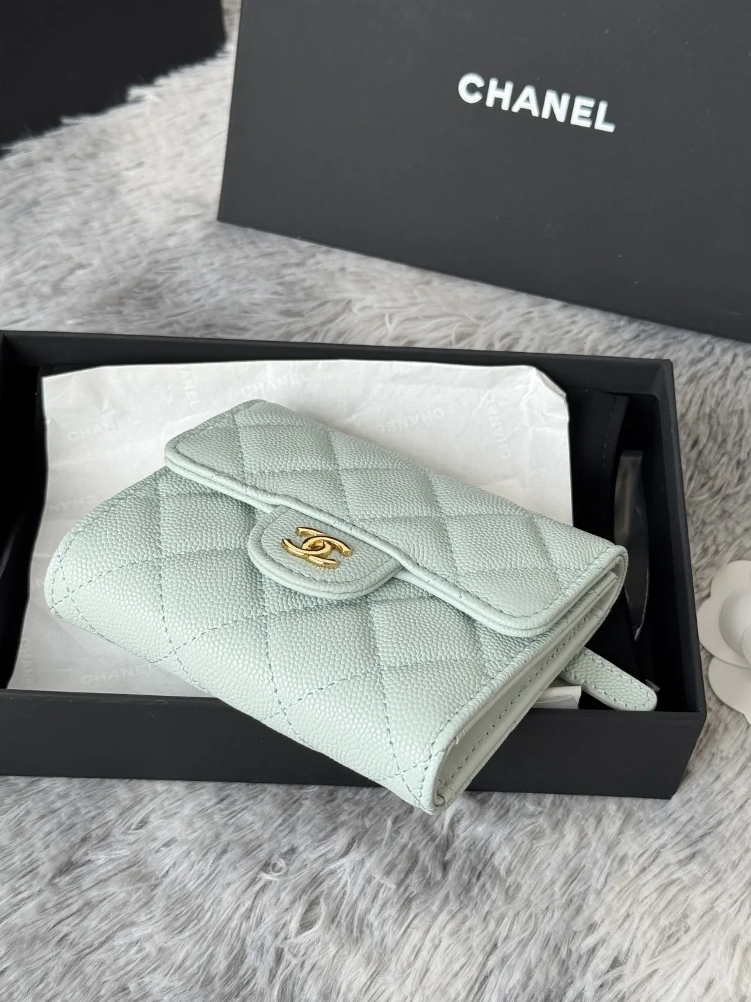 Calfskin Caviar Leather CF Trifold Wallet is now available! This Chanel card holder features 6 card slots, a back pocket for change, and easily fits 2000 RMB. Crafted with fine lea..