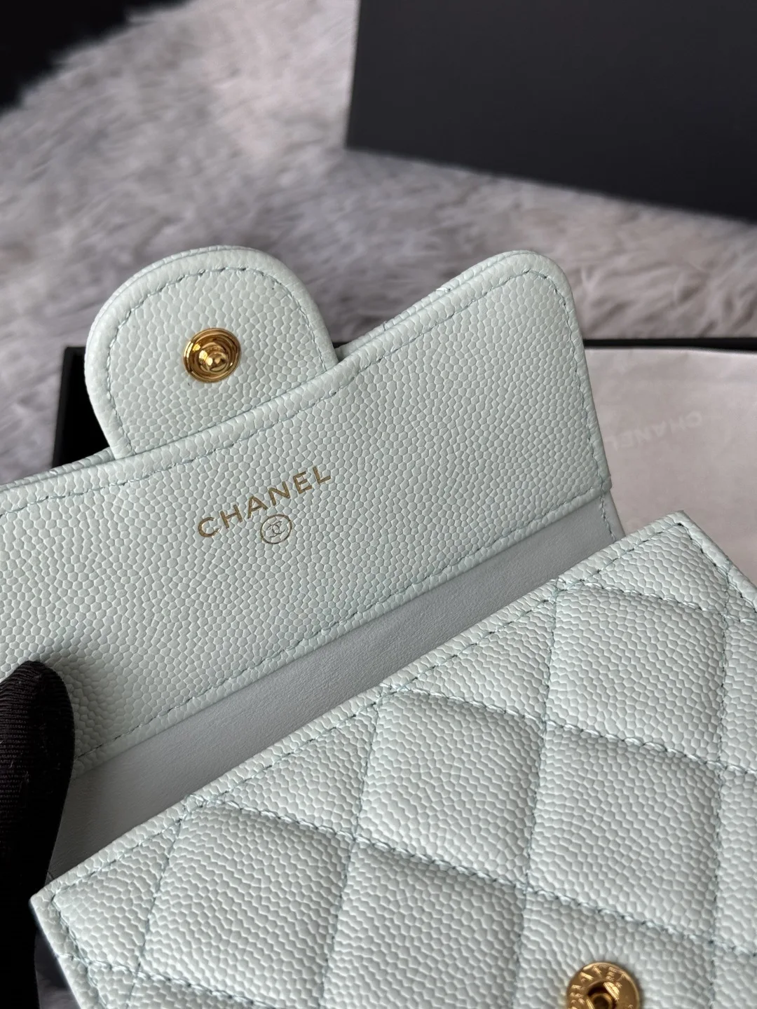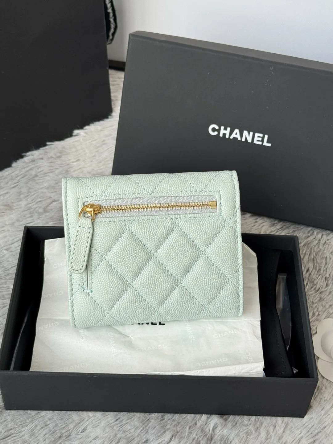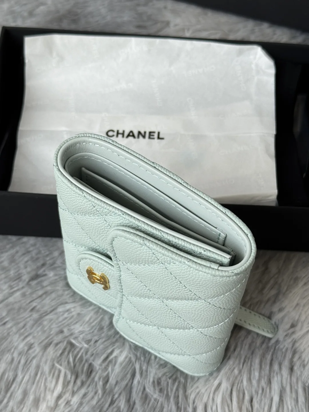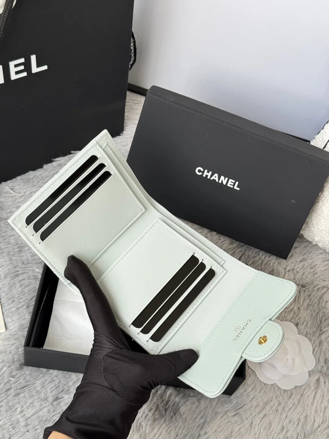 Calfskin Caviar Leather CF Trifold Wallet is now available! This Chanel card holder features 6 card slots, a back pocket for change, and easily fits 2000 RMB. Crafted with fine lea..