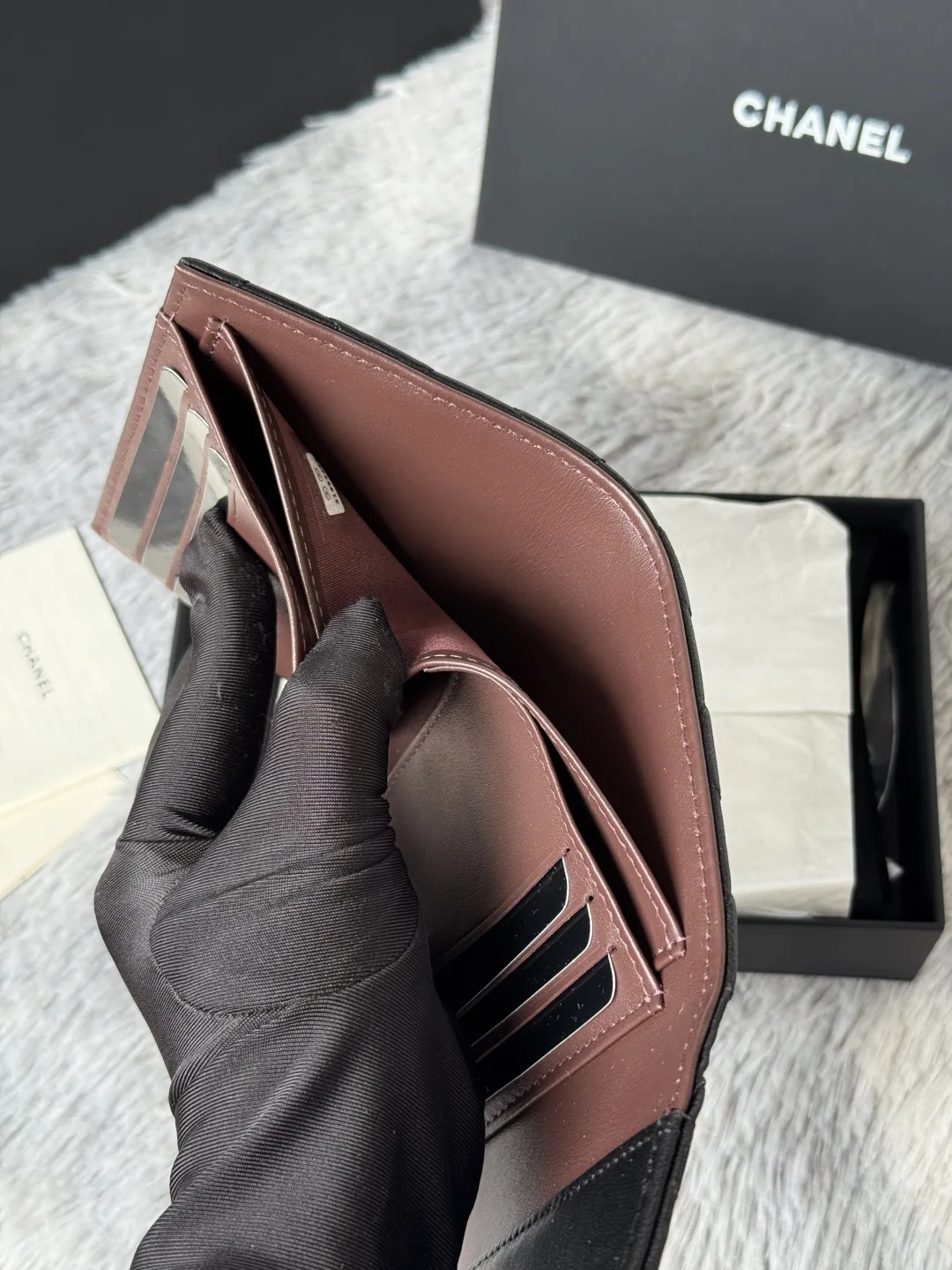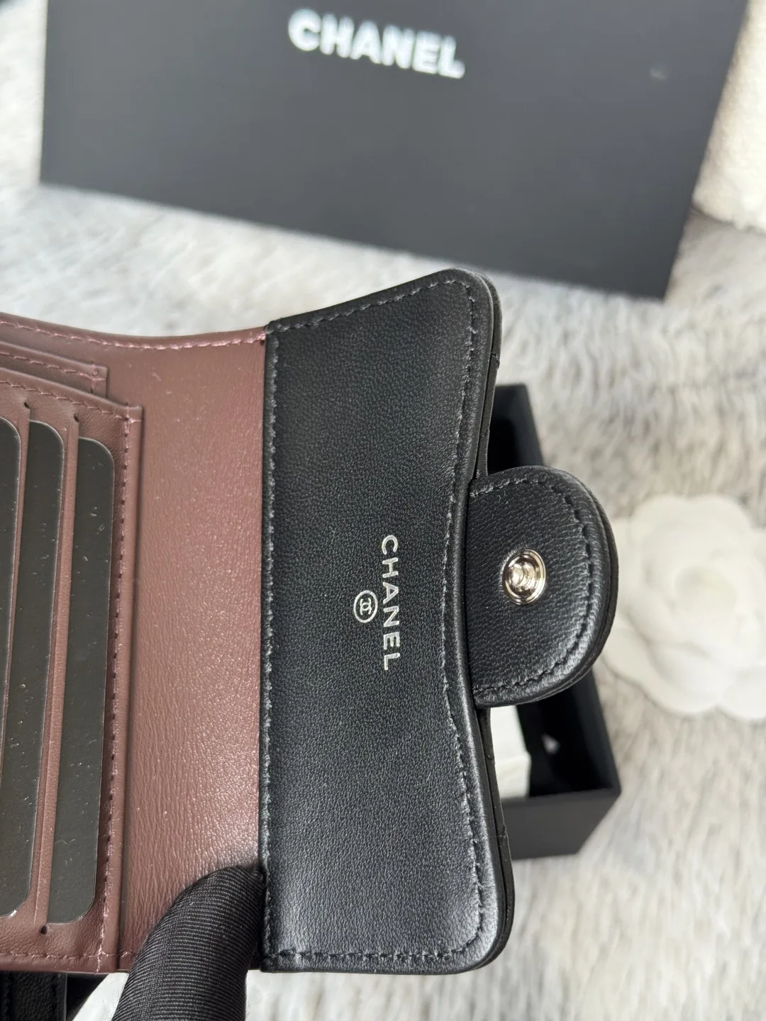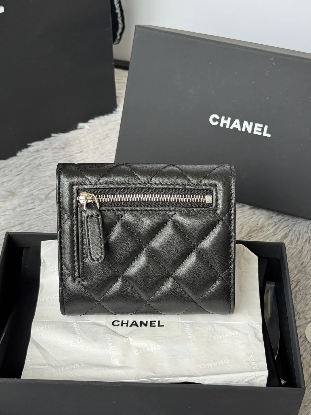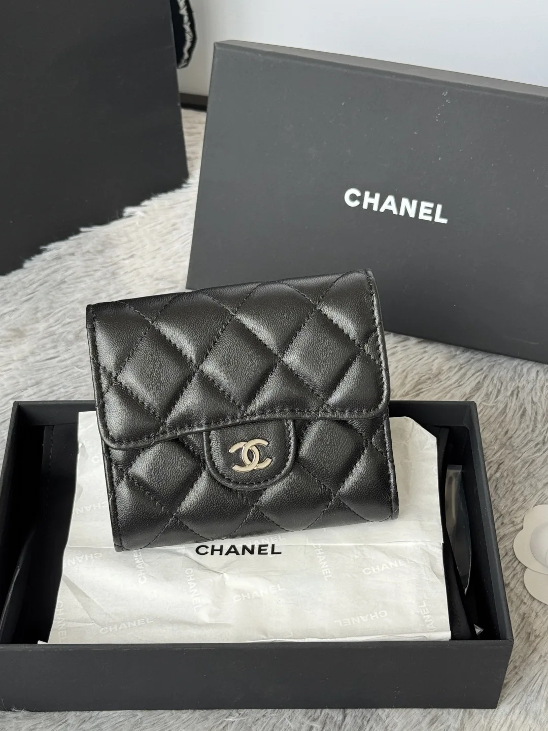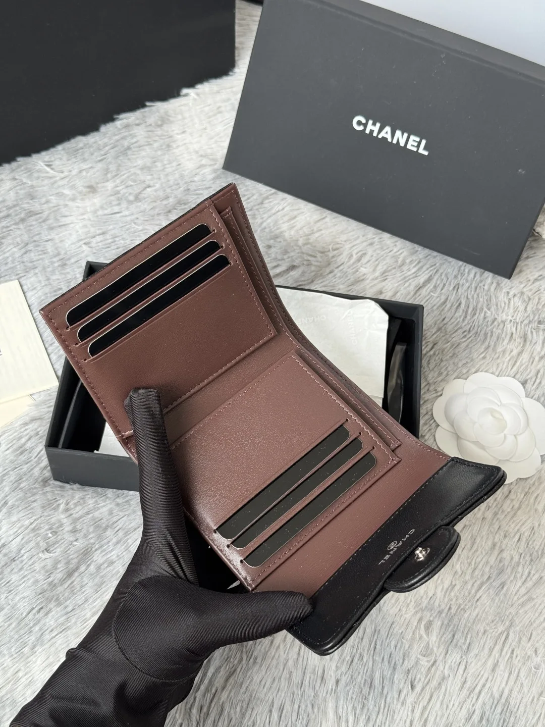 The lambskin CF short tri-fold wallet has arrived! It features six card slots for Chanel, a coin pocket at the back, and can easily hold 2000 RMB. The leather is delicate, compleme..
