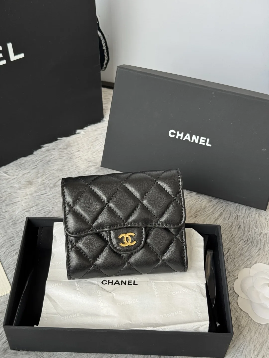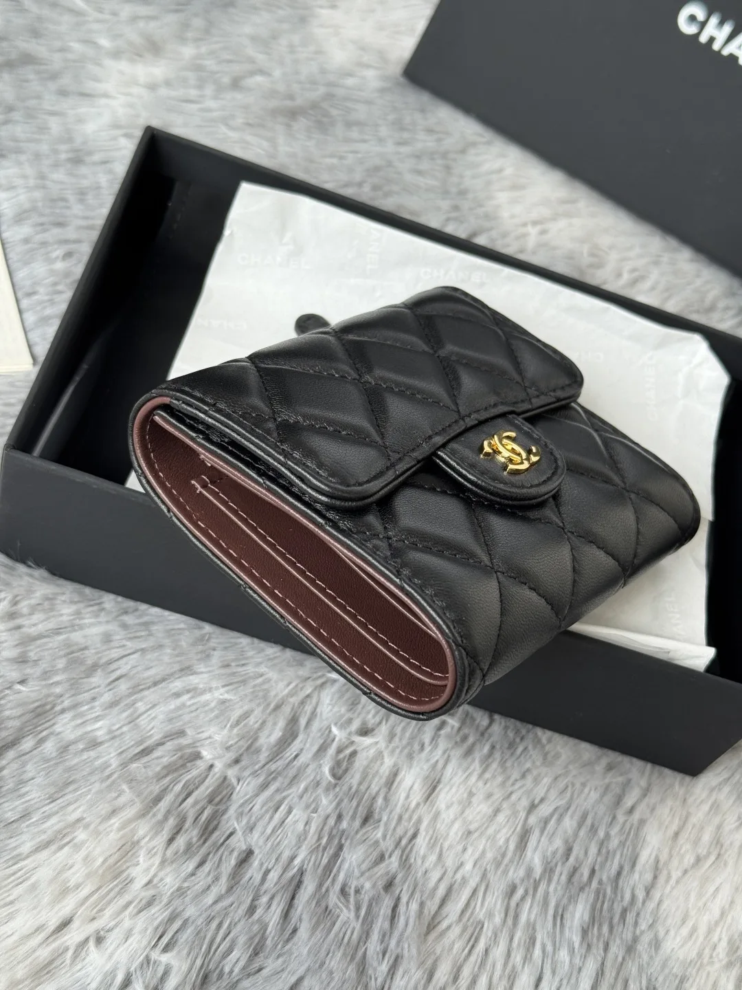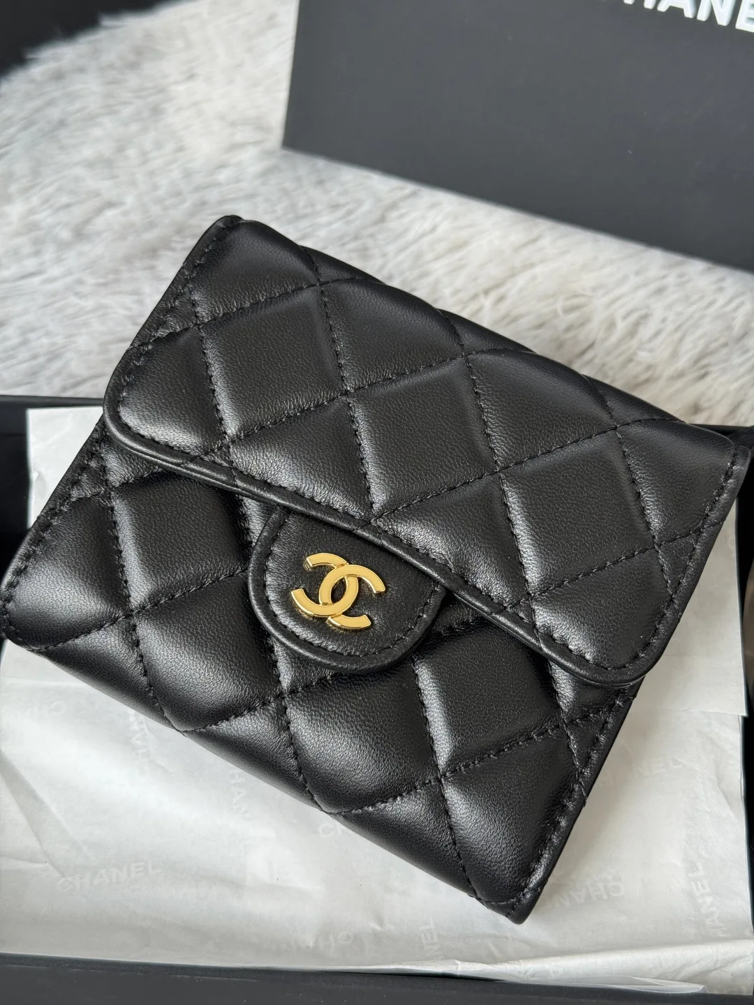 The lambskin CF short tri-fold wallet has arrived! It features six card slots for Chanel, a coin pocket at the back, and easily accommodates 2000 RMB without any hassle! The leathe..