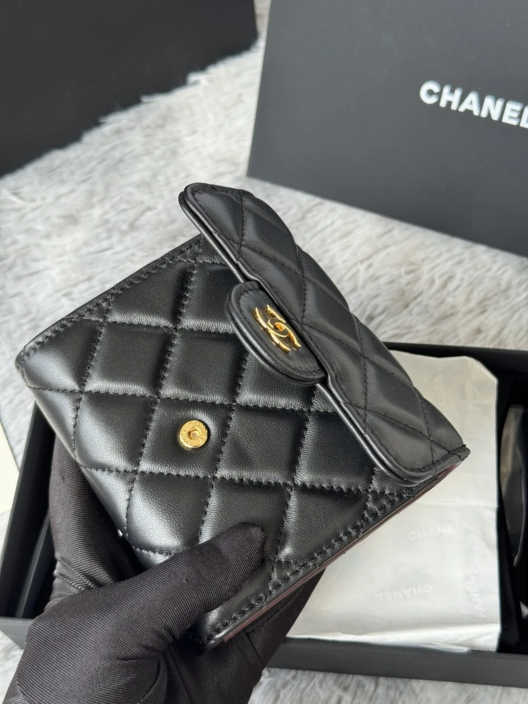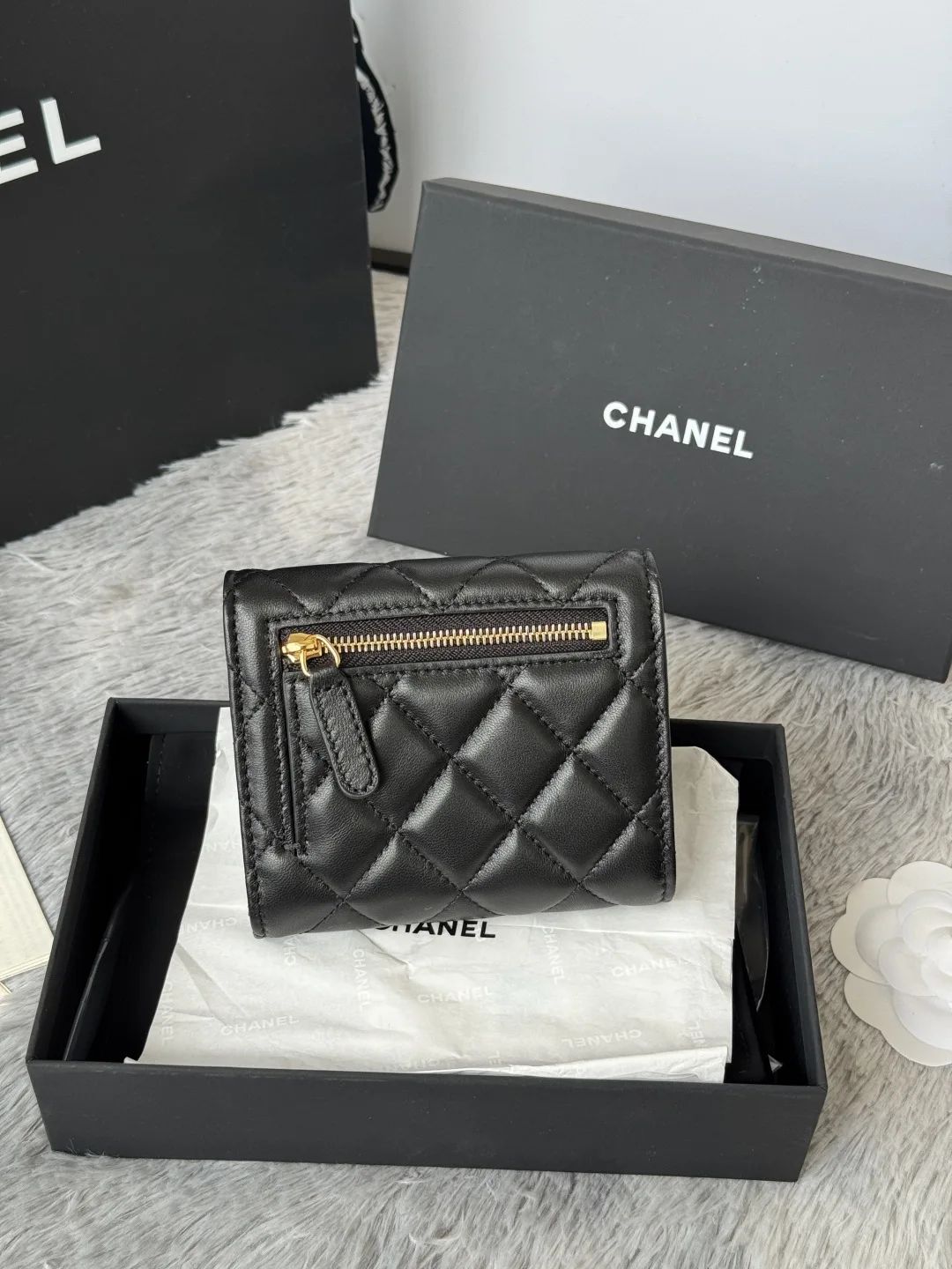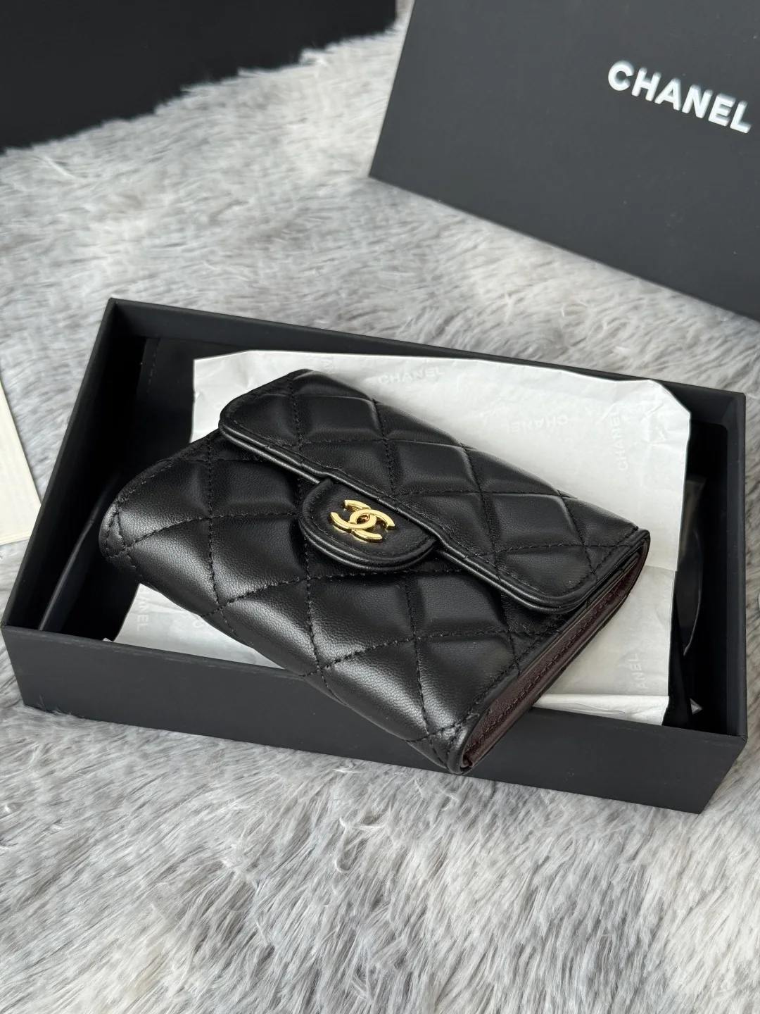 The lambskin CF short tri-fold wallet has arrived! It features six card slots for Chanel, a coin pocket at the back, and easily accommodates 2000 RMB without any hassle! The leathe..