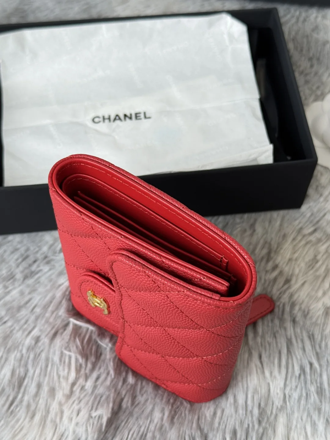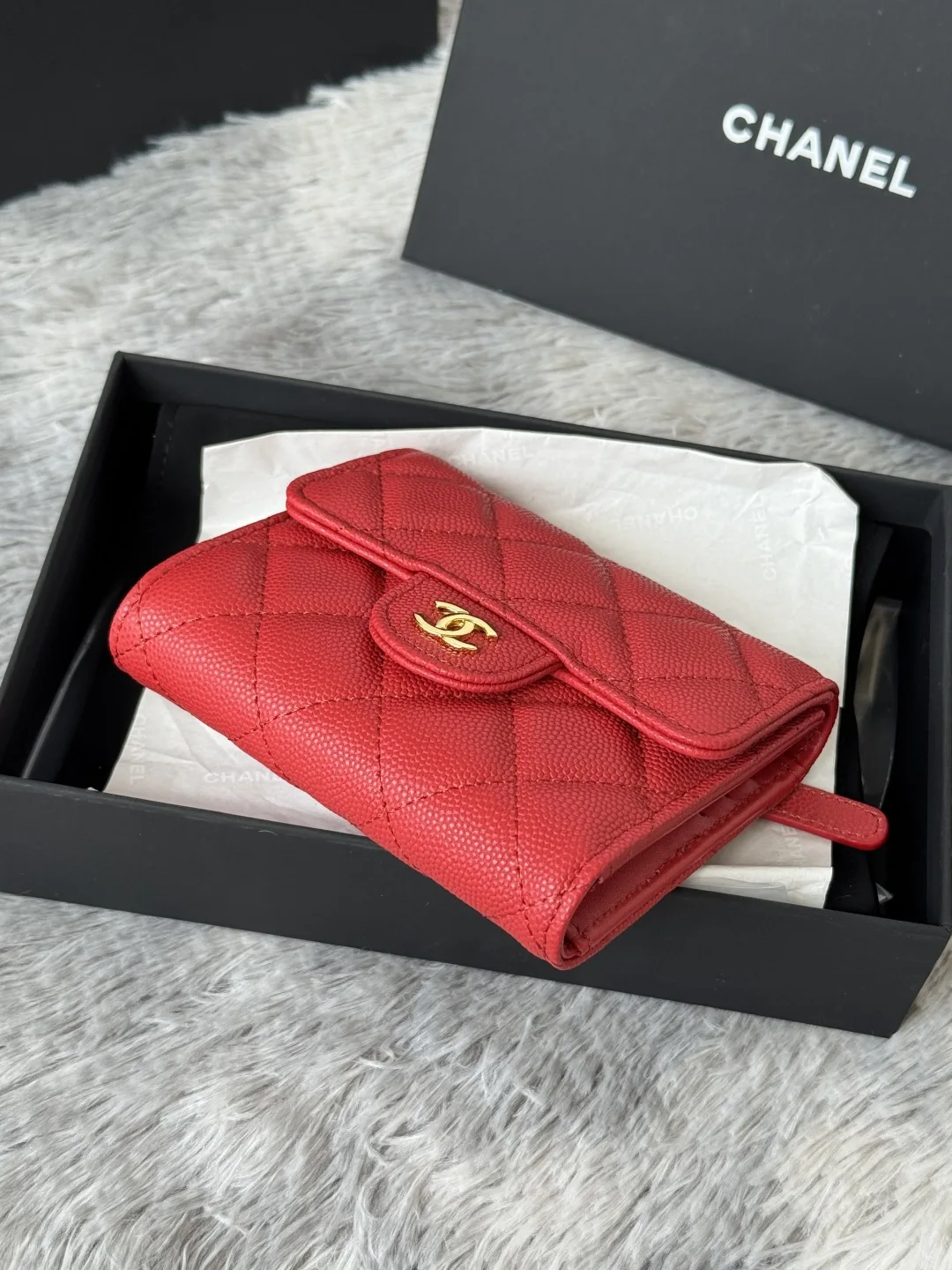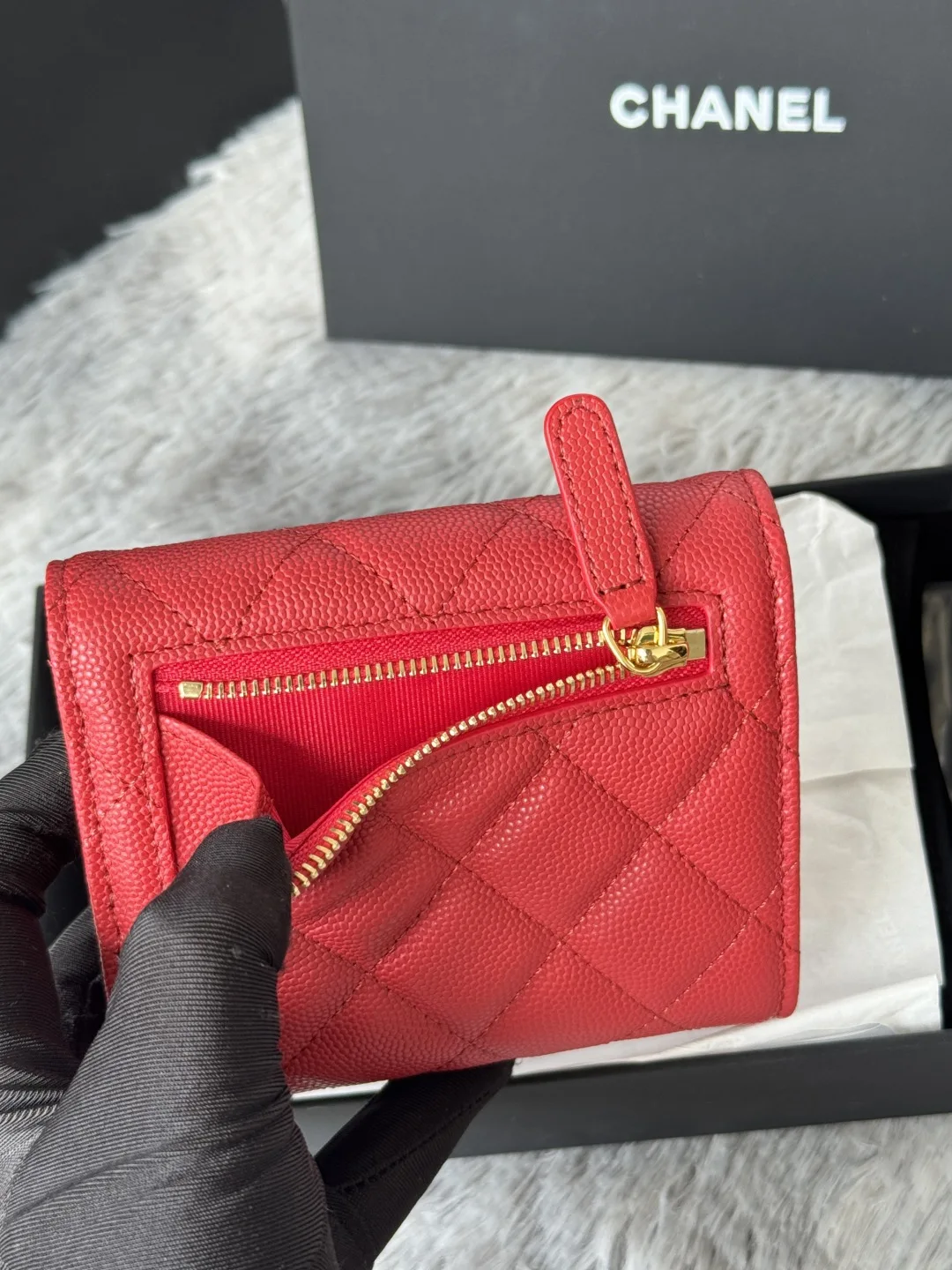 Calfskin Caviar Leather CF Small Flap Wallet is now in stock! This Chanel wallet features 6 card slots, a back coin purse, and easily holds 2000 RMB. The delicate leather is paired..