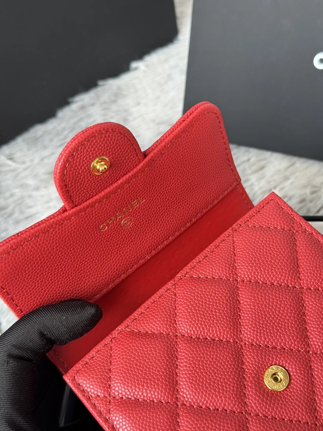 Calfskin Caviar Leather CF Small Flap Wallet is now in stock! This Chanel wallet features 6 card slots, a back coin purse, and easily holds 2000 RMB. The delicate leather is paired with gold hardware for a fashionable and trendy look. It can be carried by hand or placed in a bag. A great storage item! Style code: 82288. Dimensions: 10.5*11.5*3cm. Color as shown in the picture. Exclusive real shot.