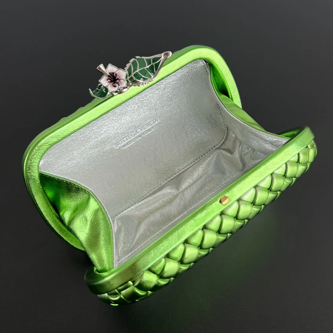 Bv Kont 826183 features green gradient leather with three-dimensional floral embellishments, evoking a romantic ambiance reminiscent of passing by a flower shop on the way home. ..