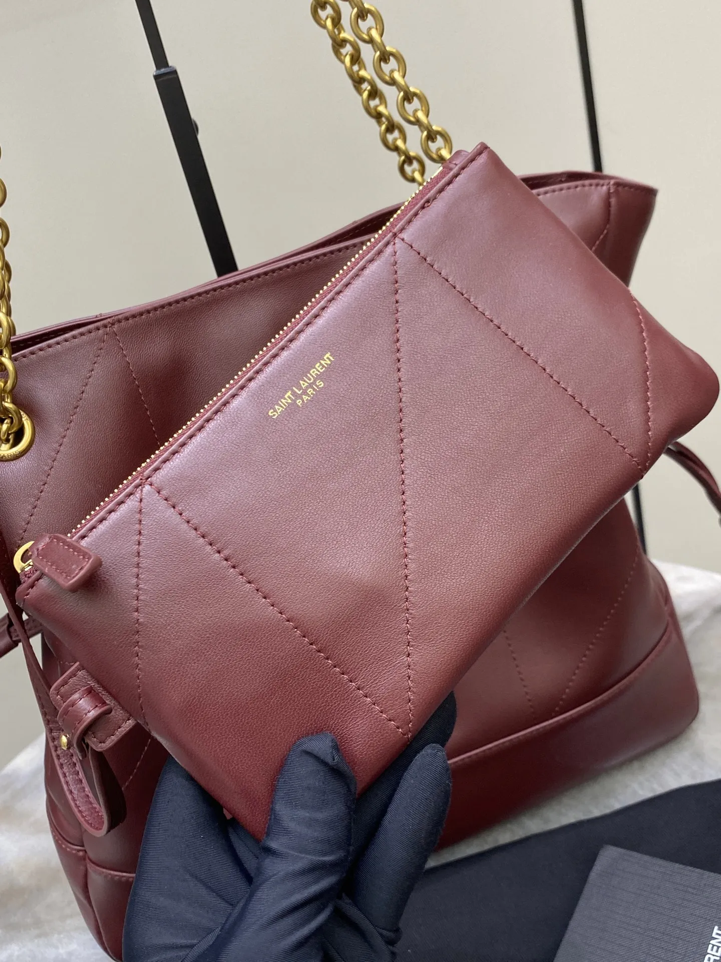 [Small Size] Russet Lambskin, Antique Gold YSL, New Small Jamie 4.3 Large Pochon Lambskin Shoulder Bag. The designer really understands what consumers need. Many tote bag designs fail to combine aesthetics and practicality, but this tote does! It s lightweight, spacious, and elegant! It s a practical tote with an online design and a luxurious feel. I think it s even more beautiful than the 22bag! Can I say that? It s also a mommy bag that allows you to take care of your baby elegantly.