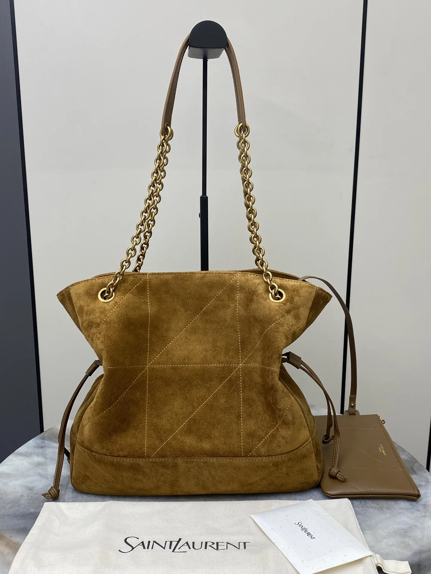 [Small Size] Caramel Frosted Antique Gold YSL New Small Jamie 4.3 Large Pochon Lambskin Underarm Bag. The designer really understands what consumers need! Many tote bag designs fail to combine aesthetics and practicality, but this tote does it! It s lightweight, spacious, and elegant! It s a practical tote with an online design and a luxurious feel. I think it s even more beautiful than the 22bag! Can I say that? It s also a mommy bag that allows you to take care of your baby elegantly.