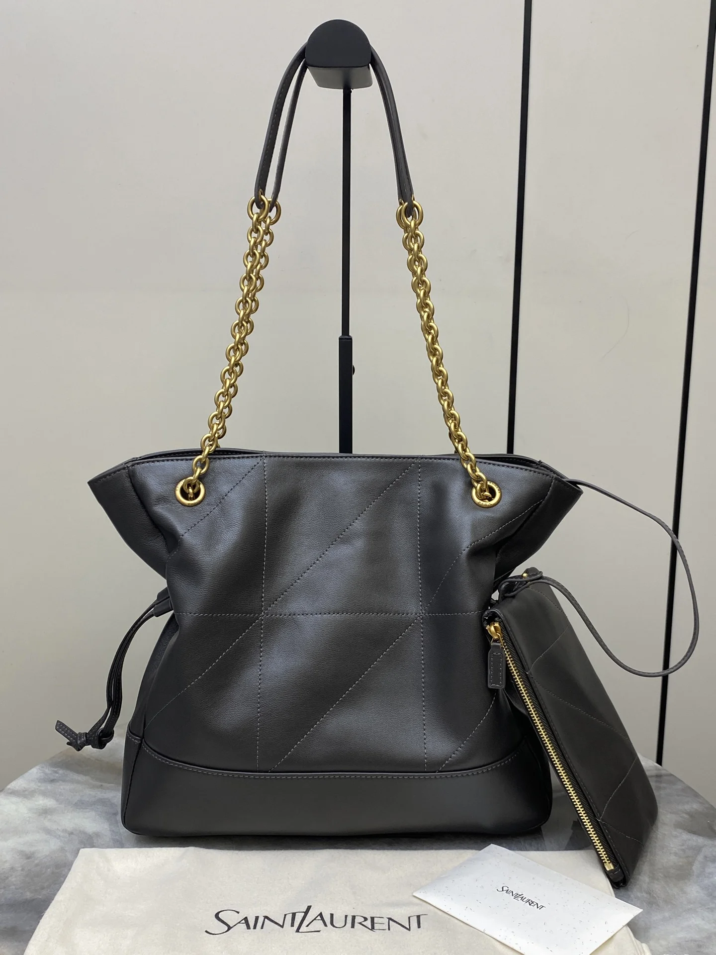 [Small Size] Urban Grey Lambskin Antique Gold YSL New Small Jamie 4.3 Large Pochon Lambskin Underarm Bag. The designer really understands what consumers need! Many tote bag designs fail to combine aesthetics and practicality, but this tote does it! It s lightweight, has a large capacity, and is very elegant! It s a practical tote with an online design and a luxurious feel. I think it s more beautiful than the 22bag! Can I say that? It s also a mommy bag that allows you to take care of your baby elegantly.