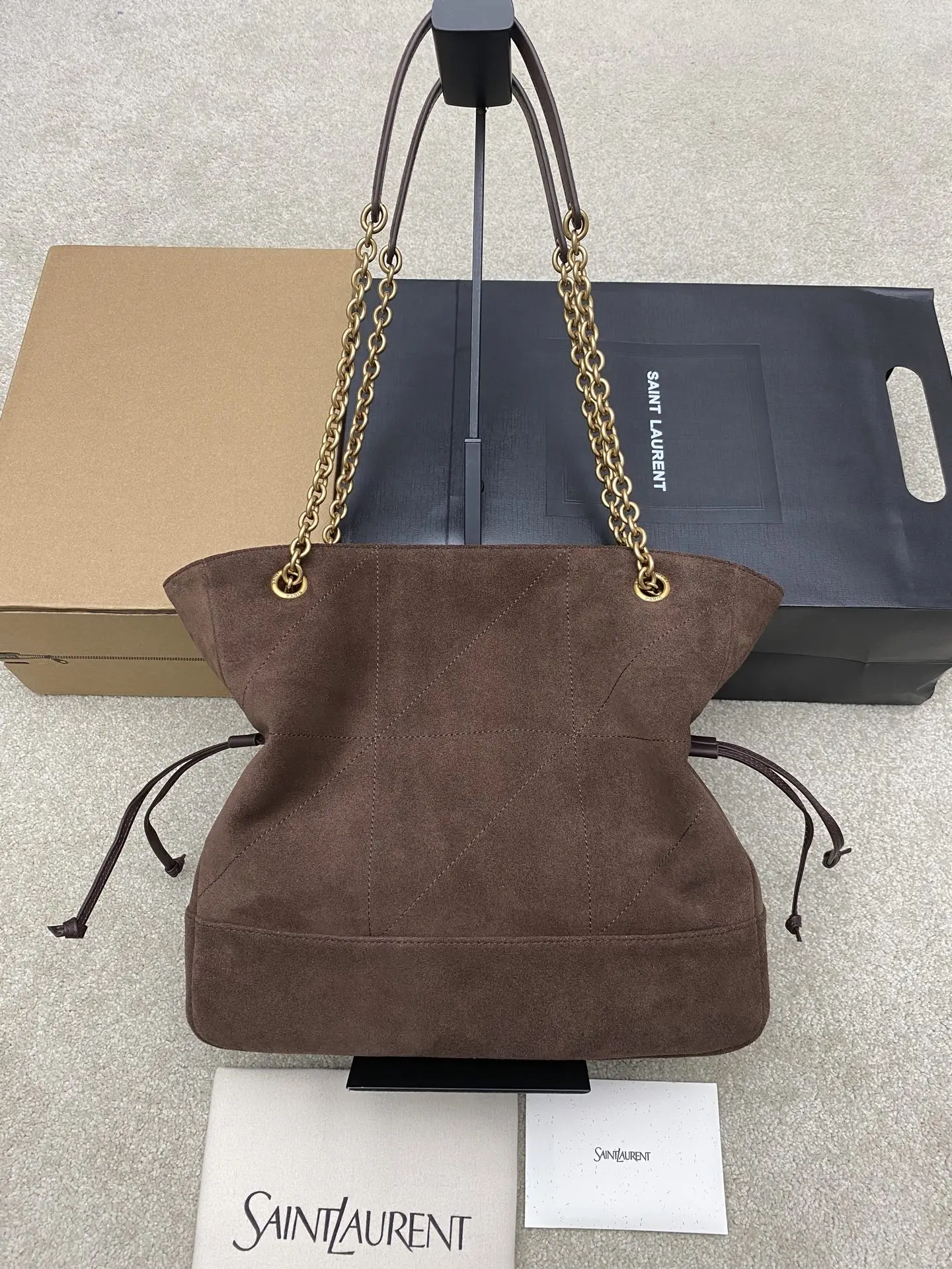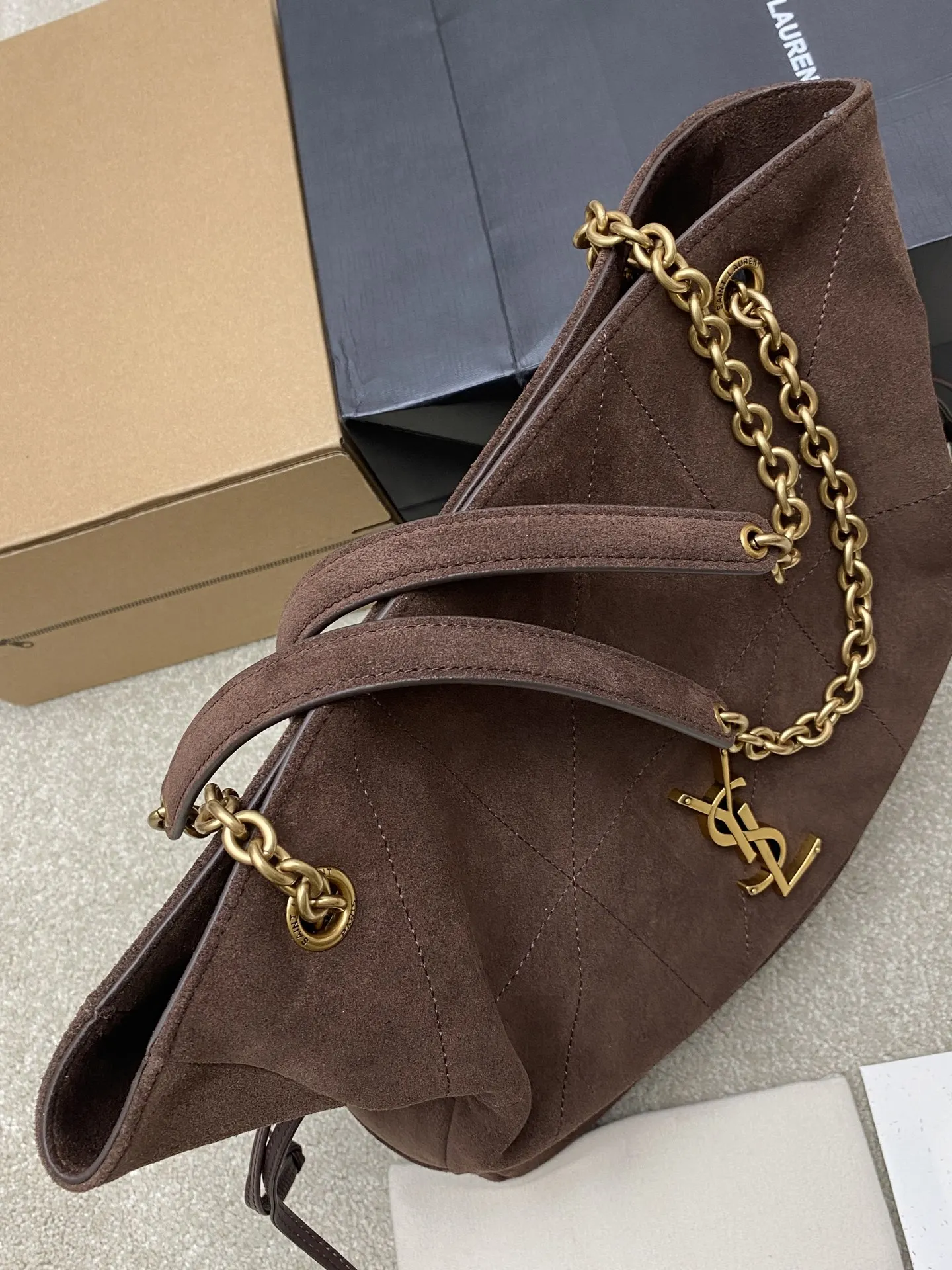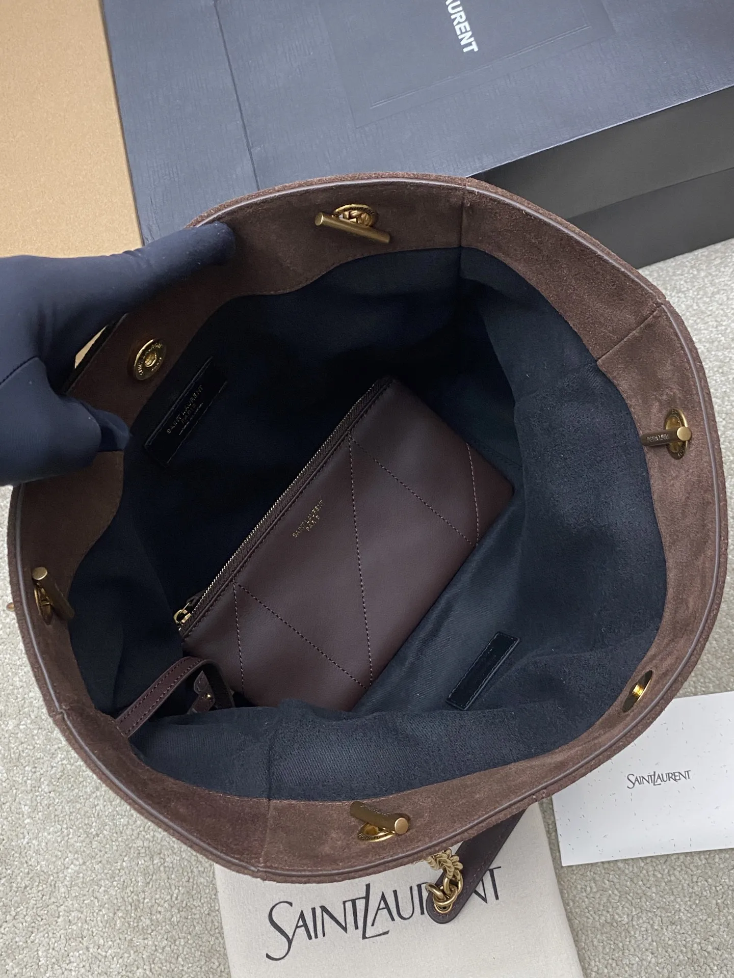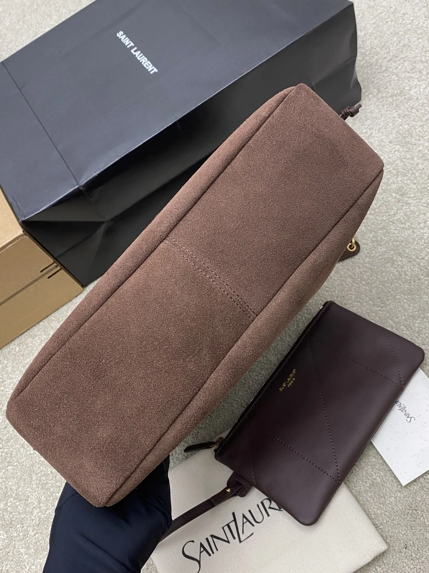 [Small Size] Coffee Scrub Antique Gold YSL New Small Jamie 4.3 Large Pochon Lambskin Underarm Bag. The designer really understands what consumers need! Many tote bag designs fail to combine aesthetics and practicality, but this tote does it! It s lightweight, spacious, and elegant! It s a practical tote with an online design and a luxurious feel. I think it s even more beautiful than the 22bag! Can I say that? It s also a mommy bag that allows you to take care of your baby elegantly.