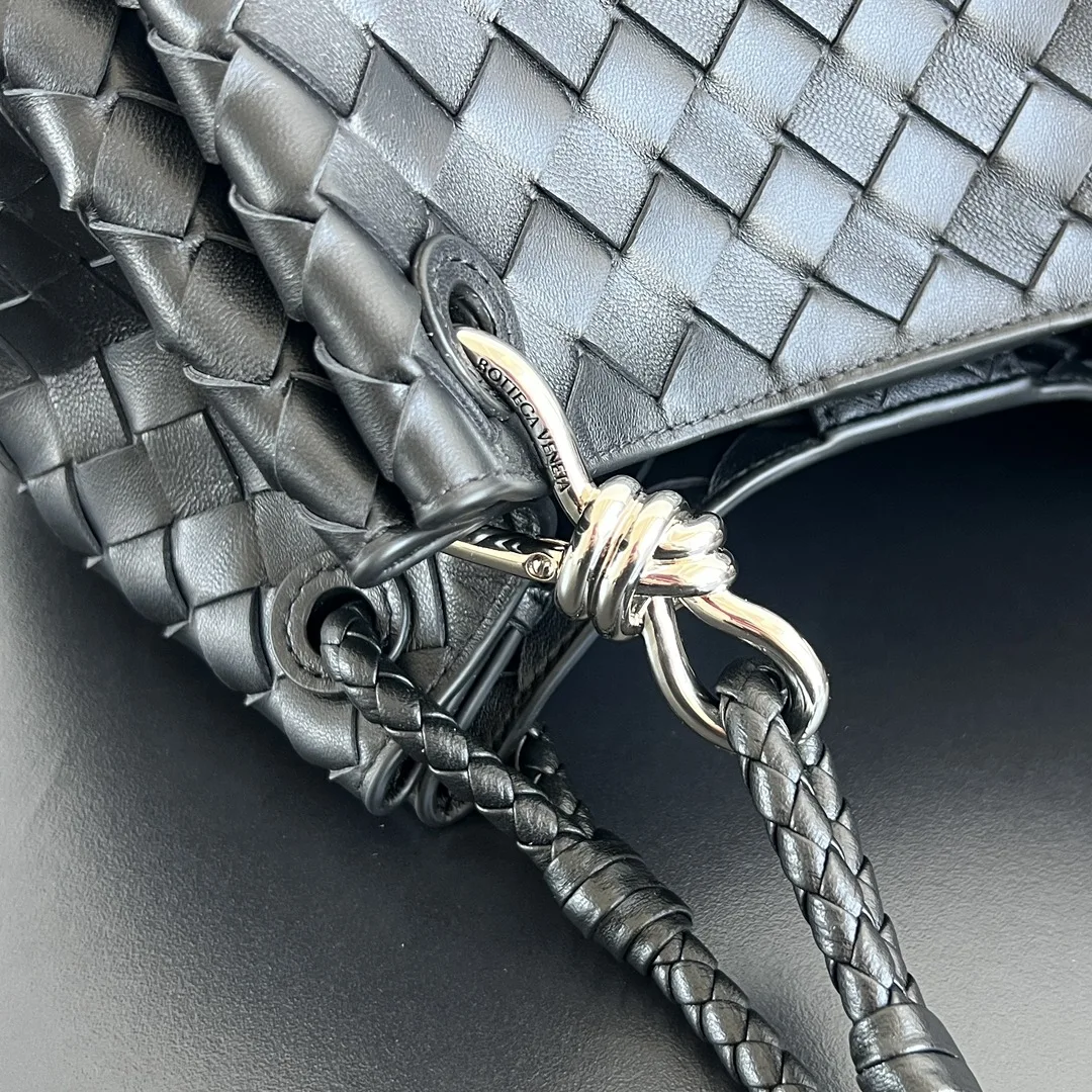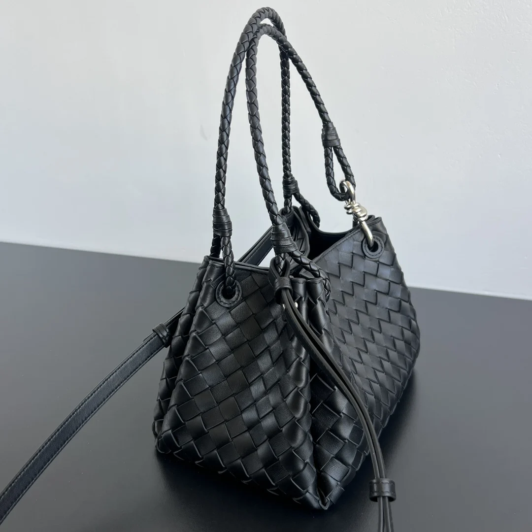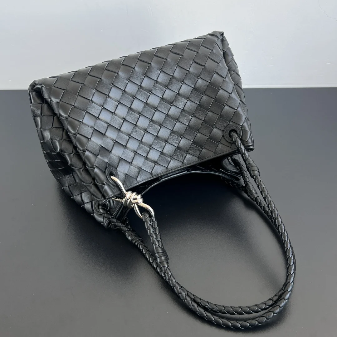 BV New Intrecciato Woven Leather Shoulder Bag 835921 with Detachable Crossbody Strap and Built-in Mini Pouch. The Parachute Bag Retains BV s Unique Woven Design and Exudes a Sense of Minimalist Sophistication with a Small Golden Knot Accent, Catering to Your Needs for Different Occasions. Size: 29.5X18.5X17.5cm