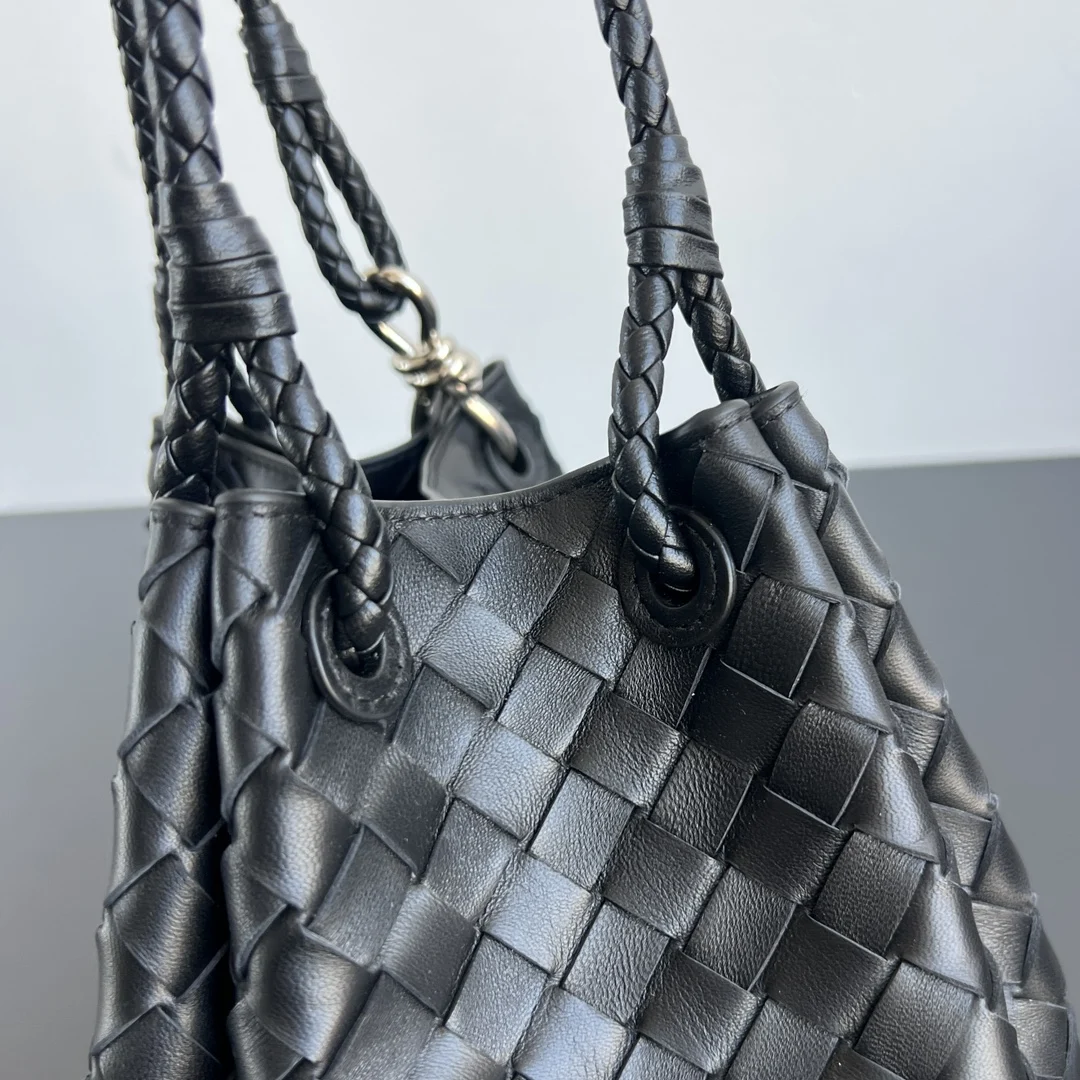 BV New Intrecciato Woven Leather Shoulder Bag 835921 with Detachable Crossbody Strap and Built-in Mini Pouch. The Parachute Bag Retains BV s Unique Woven Design and Exudes a Sens..