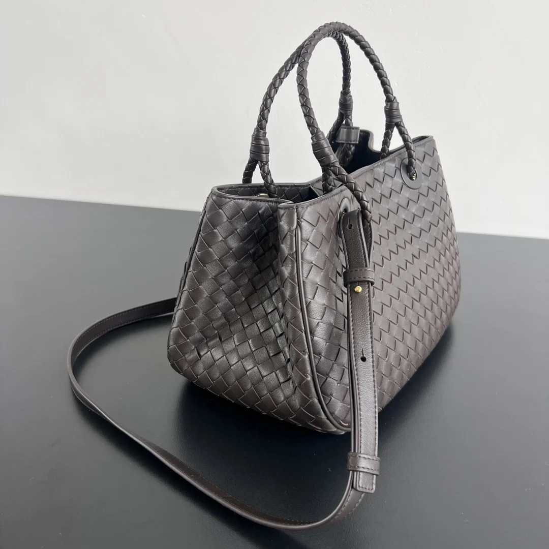 BV New Basket Tote Bag 836261, a 2002 Re-edition. The Basket classic is back, versatile and irresistible. The classic Intrecciato weave is exquisite and sophisticated, with a clean design. The interior features a Muse brass metal plate engraved with the founding year and pre-assigned number. Made of soft and delicate Napa lambskin, it comes with a woven top handle and an adjustable, detachable crossbody strap. The interior has two compartments with a zippered pocket in the middle and a magnetic closure. From texture to practicality, it is versatile, stylish, and super lightweight. A must-have for BV fans! Size: 31x18.5x16