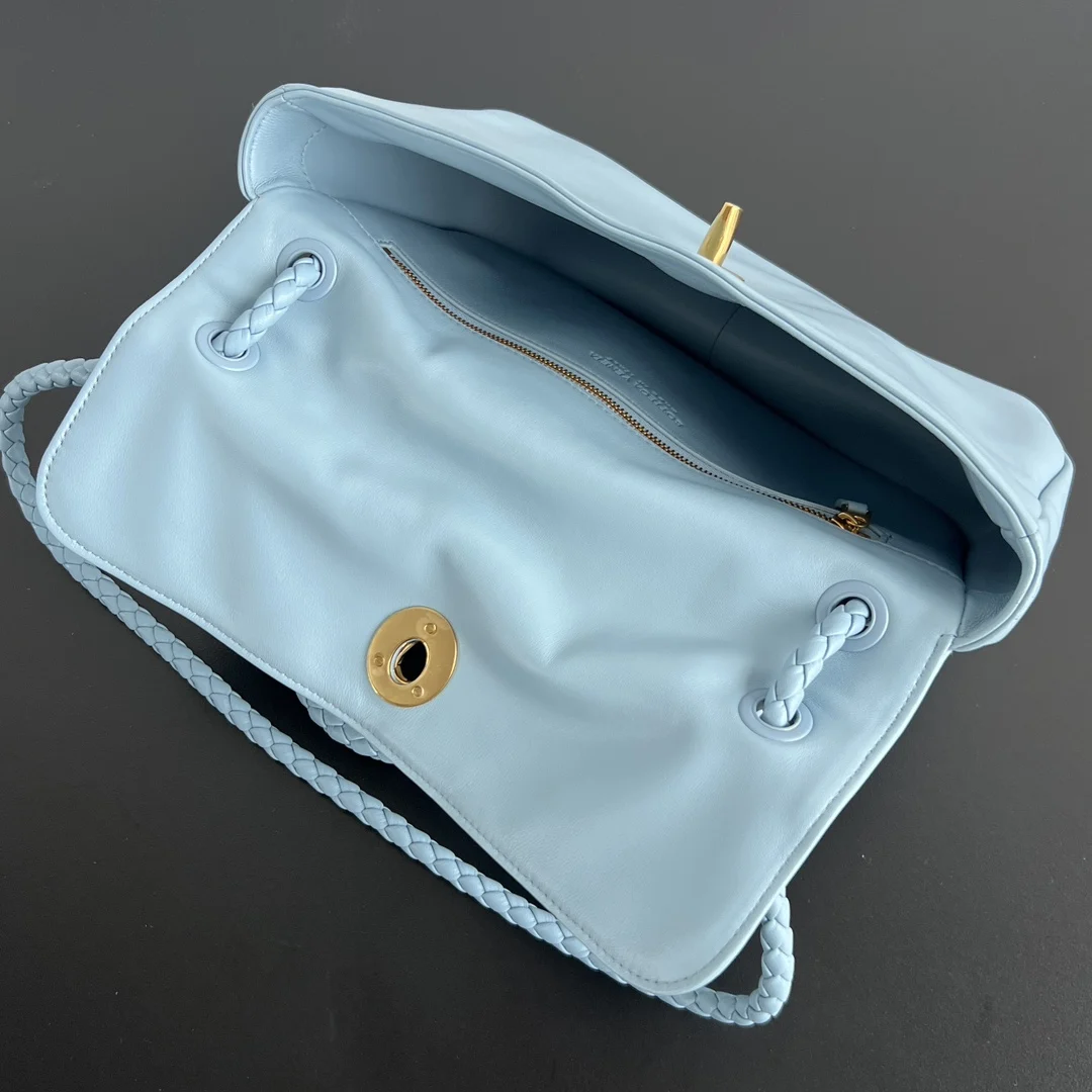 BV New Madison Shoulder Bag 836296 returns to smooth leather for a silky experience. The Madison is a bag that can be shaped as desired and is incredibly lightweight. It is made of soft lambskin with a silk-like luster, complemented by the brand s new metal knot buckle, which is a fashionable detail. It features a sliding woven shoulder strap for crossbody or single-shoulder wear. The retro horizontal shape exudes a luxurious charm. The Madison offers you an alternative to woven designs. Dimensions: 27x16x6