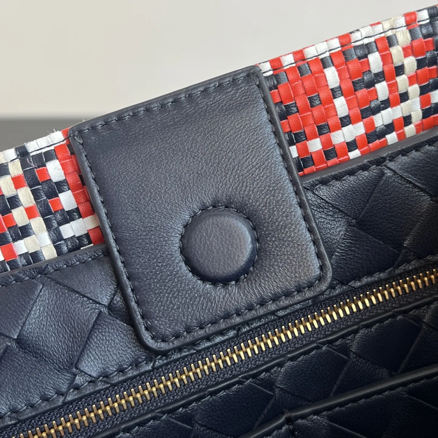 BV New Andiamo Denim 836381 Terry denim has a vintage distressed feel, paired with a woven leather shoulder strap and the iconic knot gold buckle, casual yet sophisticated The Vichy check lining at the bag opening is a striking detail, with playful and fashionable colors Ample space, a true capacity king, the coaxial woven shoulder strap can be switched to any way of carrying, versatile and ever-changing, effortless and relaxed fashion, a must-have for denim lovers Size: 35x25x11