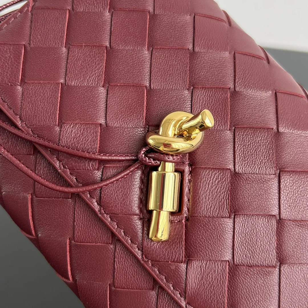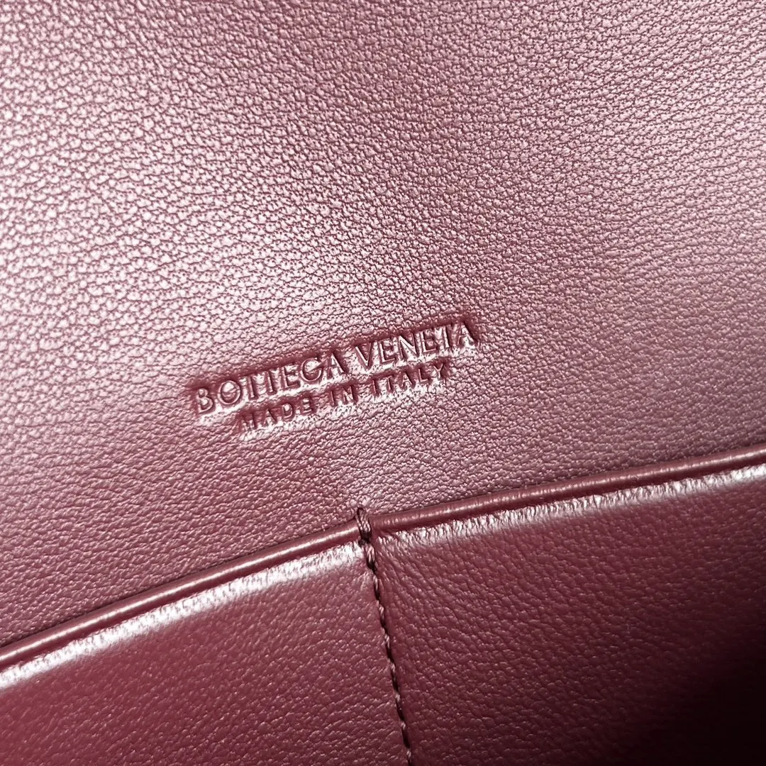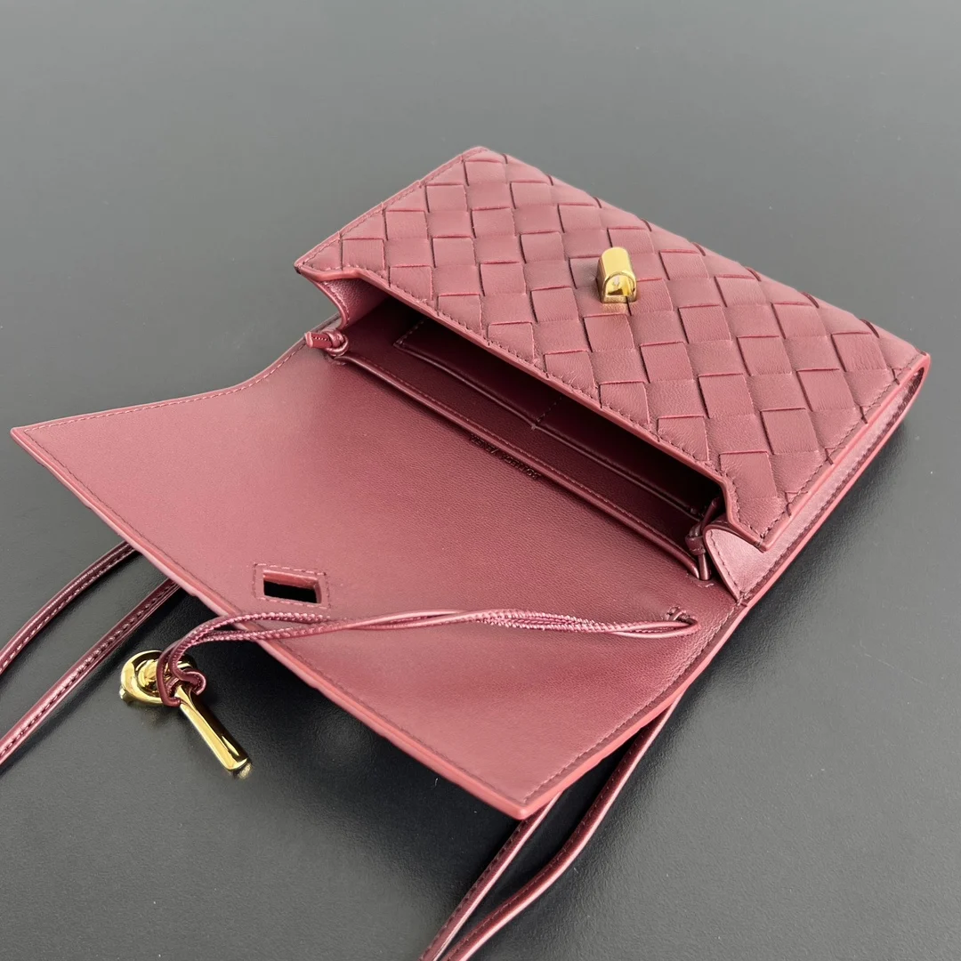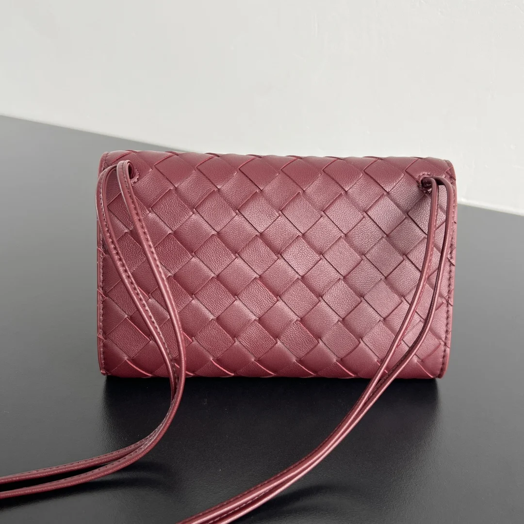 BV New Arrival Andiamo Envelope Crossbody Bag 836940. The Andiamo family welcomes a new member! This mini version is exquisitely cute . The entire bag features the intrecciato woven design, crafted from lambskin leather, and is detailed with the iconic Muse brass metal knot closure. The interior has one compartment and two card slots, easily accommodating your phone, cards, and daily essentials. The detachable shoulder strap design allows for versatile styling! Wear it as a crossbody bag for a light and easy daytime outing, or transform it into an elegant clutch for the evening. Practical and versatile. Size: 19x13x2