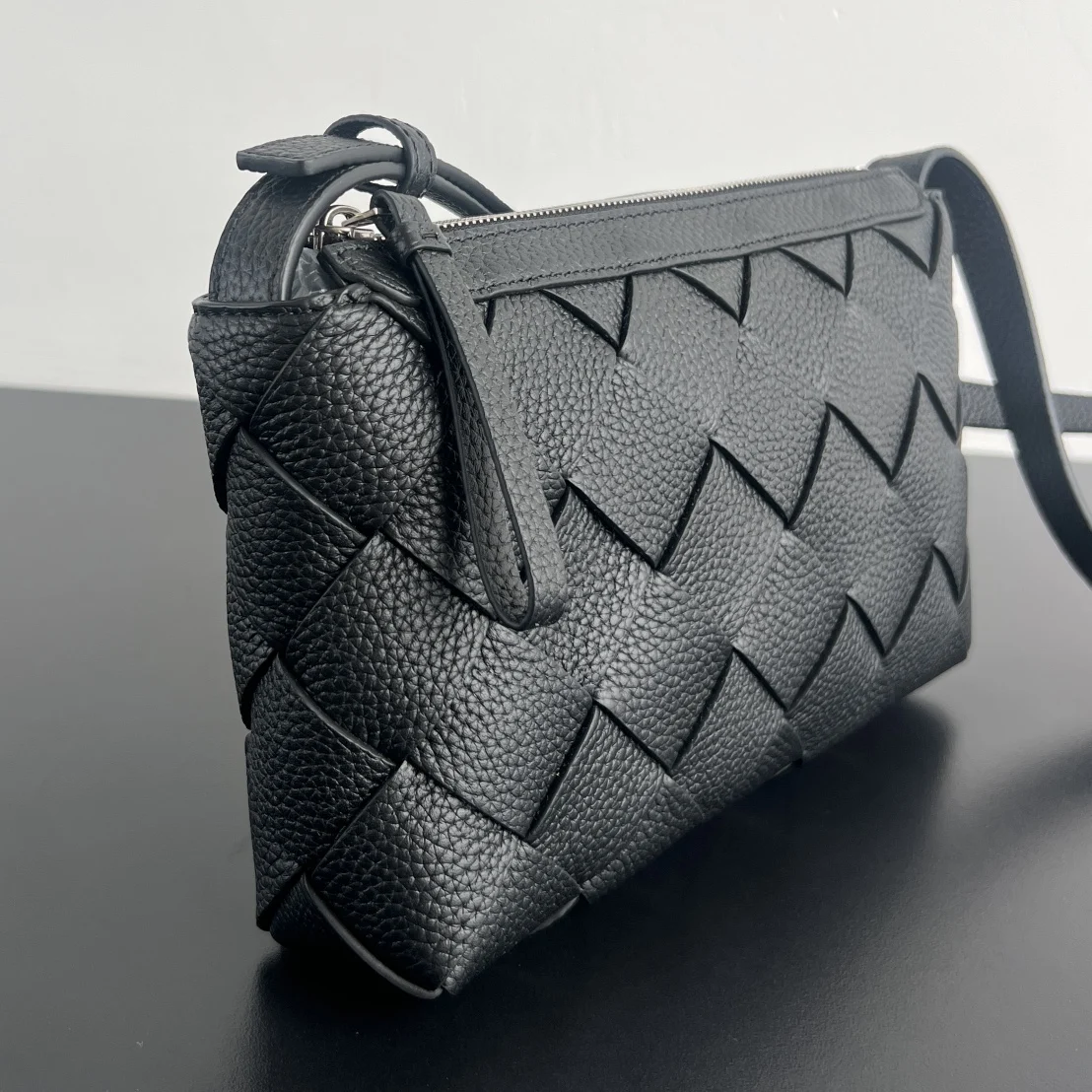 Bv New Diago Men s Crossbody Bag 837112. In fact, men really value practicality and a sense of luxury. This Diago is a must-have. The bag is crafted from a single piece of woven leather. The strap is connected from the inside of the bag, making the exterior smooth and seamless. It requires skilled craftsmen to complete on wooden molds. Made of imported grained calfskin, the leather is soft and delicate. The interior features a canvas lining with a zippered compartment, providing ample space for daily needs. The square shape is very easy to match, maximizing the street style. Dimensions: 25x15x5