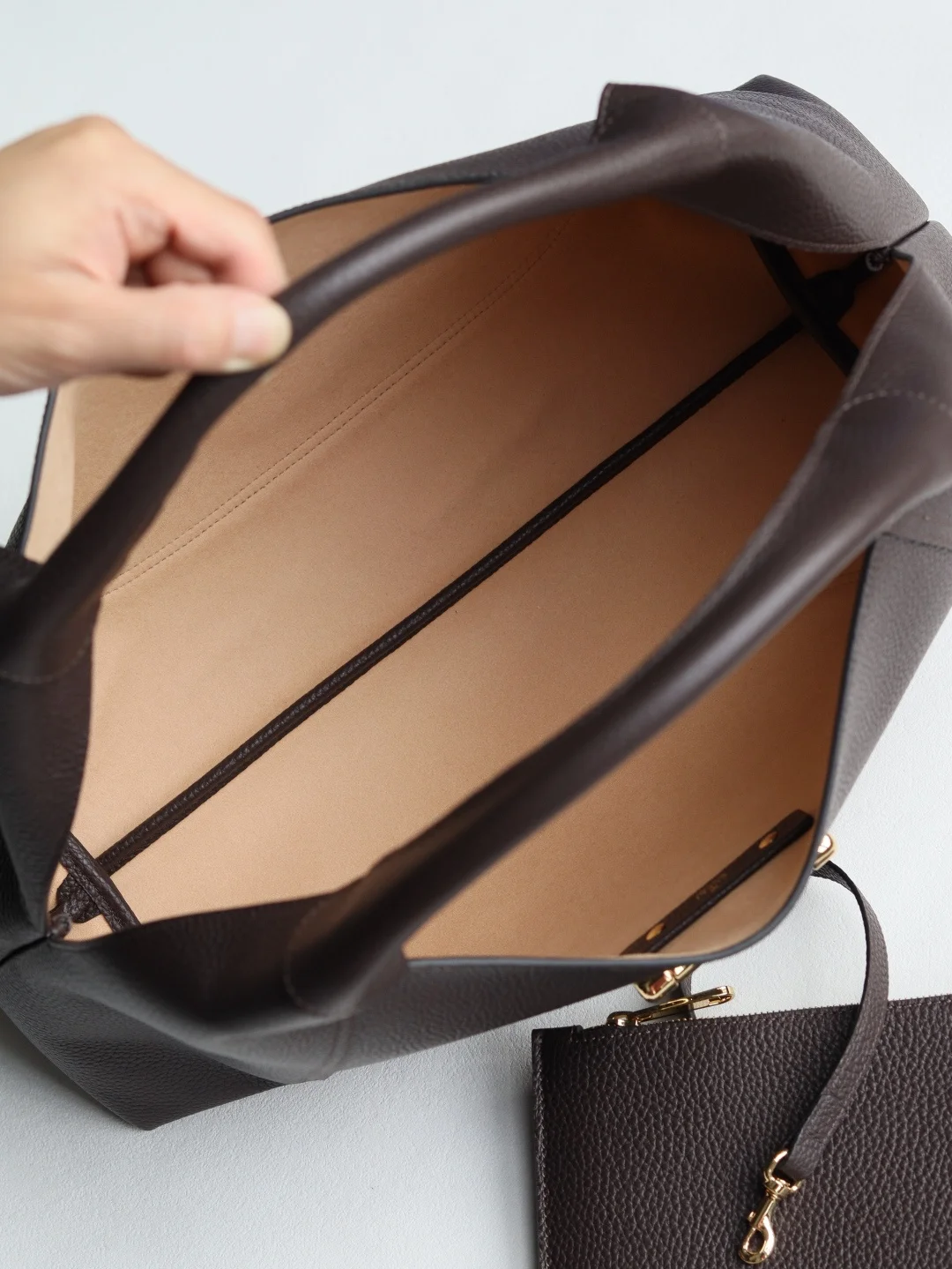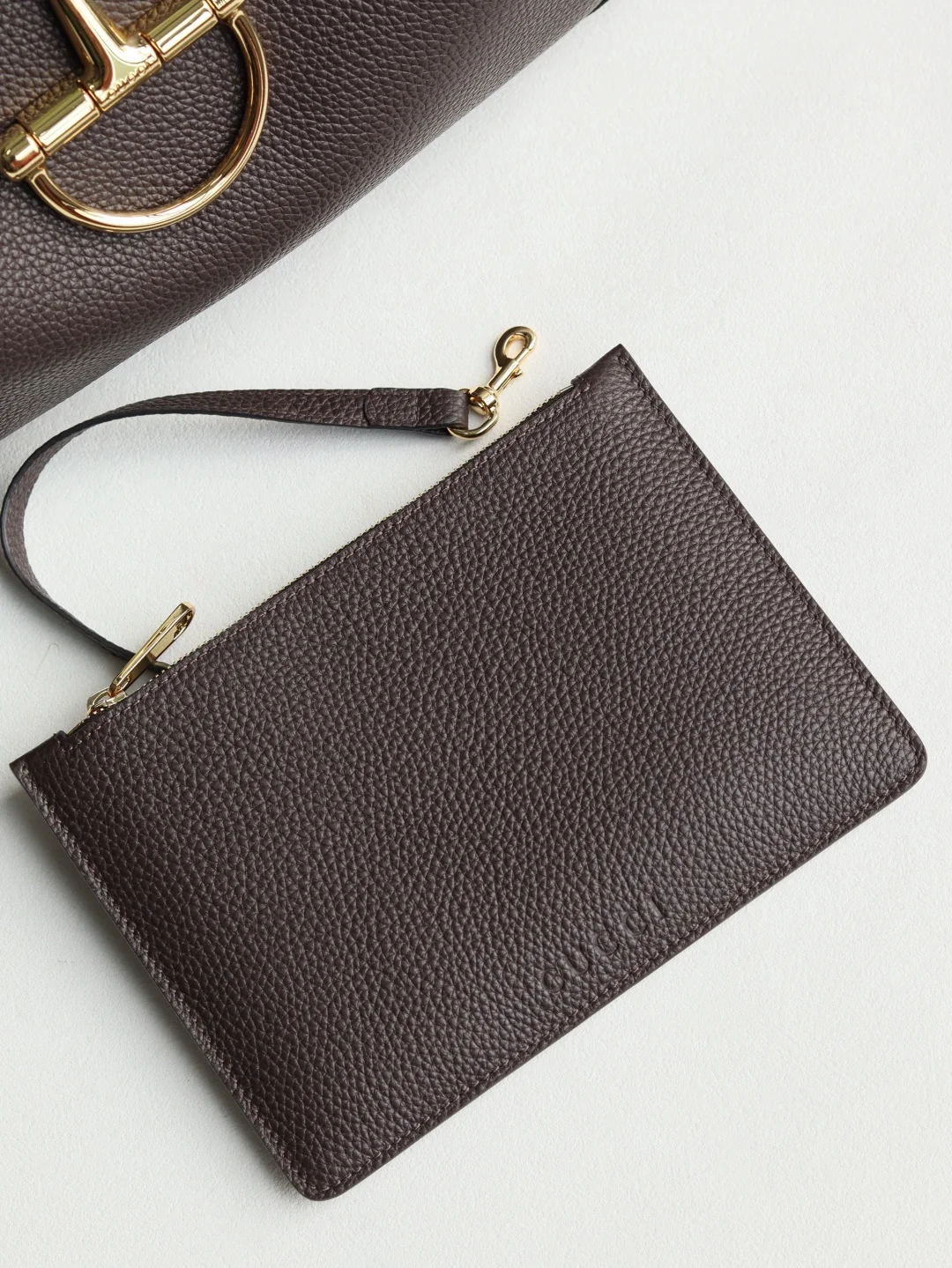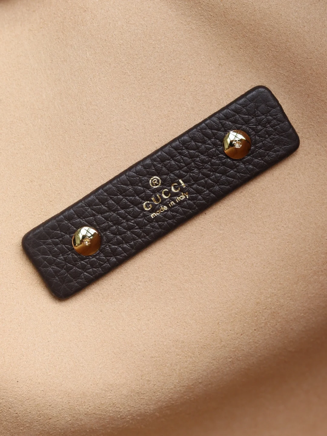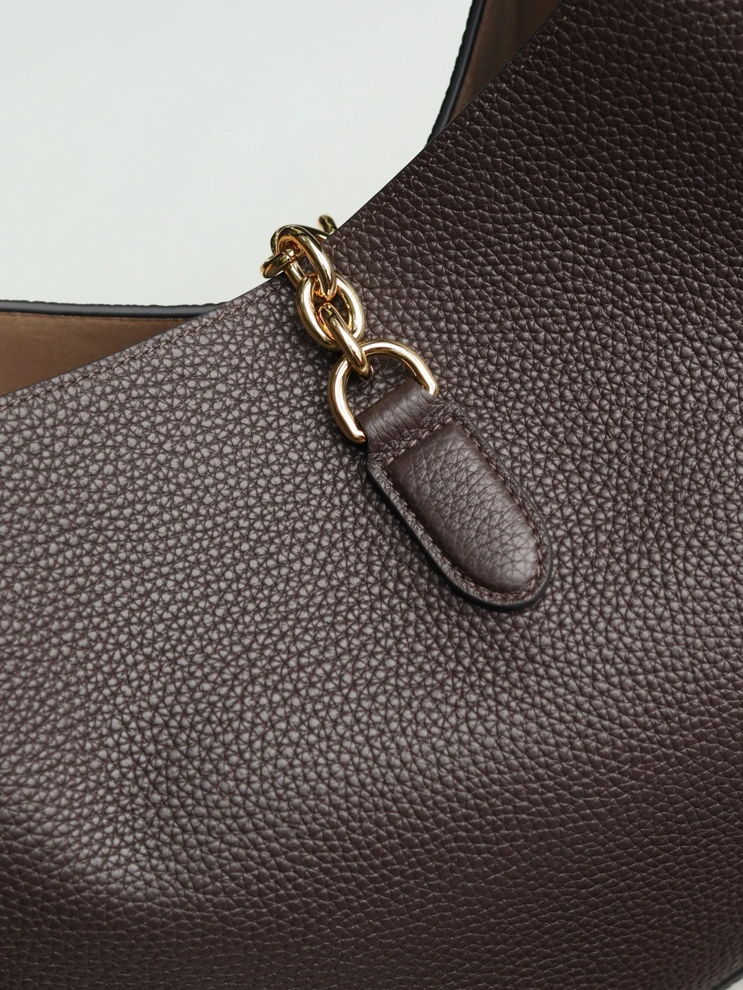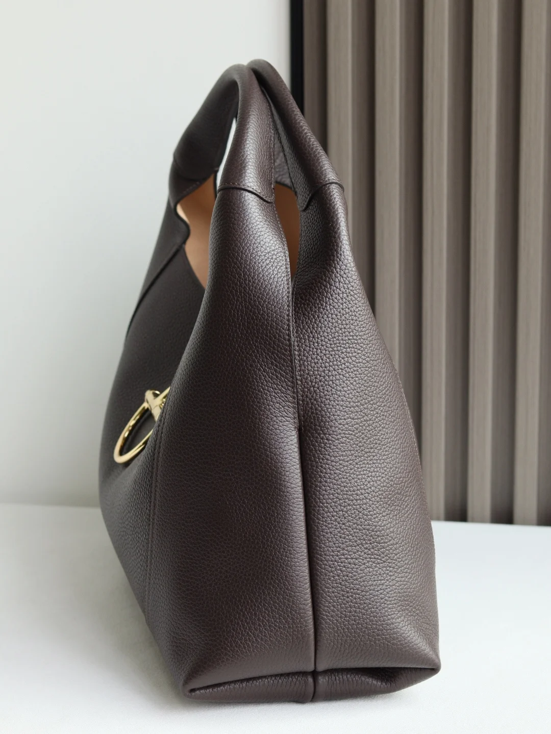 This Gucc Softbit shoulder bag artfully blends the brand s classic equestrian-style hardware with an oversized half Horsebit detail. This large shoulder bag comes with a detachable pouch.* Black grained leather* Light gold-toned hardware* Brown microfiber lining* Half Horsebit* Inside: Detachable pouch* Can fit an iPhone Pro Max Plus, AirPods, a long wallet, and a lipstick* Strap with 20cm drop* Magnetic closure* Model: 837466* Dimensions: 46cm (W) x 26cm (H) x 16cm (D)* Weight: Approximately 1.4 kg* Color: Dark Coffee Full Leather, Original Factory Leather* Made in Italy