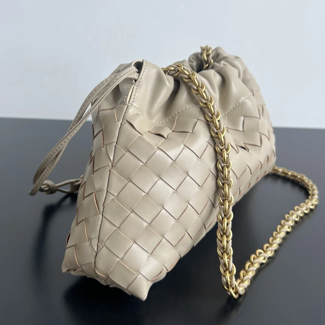 BV s new Dustbag chain bag 839394 The super popular Dustbag is now available with a chain strap The leather-woven chain design is not only more practical, but also unlocks more ways to wear it [fireworks]. Featuring a classic woven design, drawstring opening, natural pleats, and soft, delicate calfskin, it s soft, durable, and looks new even after being worn for a long time. It s lightweight and has a large capacity. If you want a casual yet fashionable bag, get this Dustbag that will make you happy Size: 33x19x8