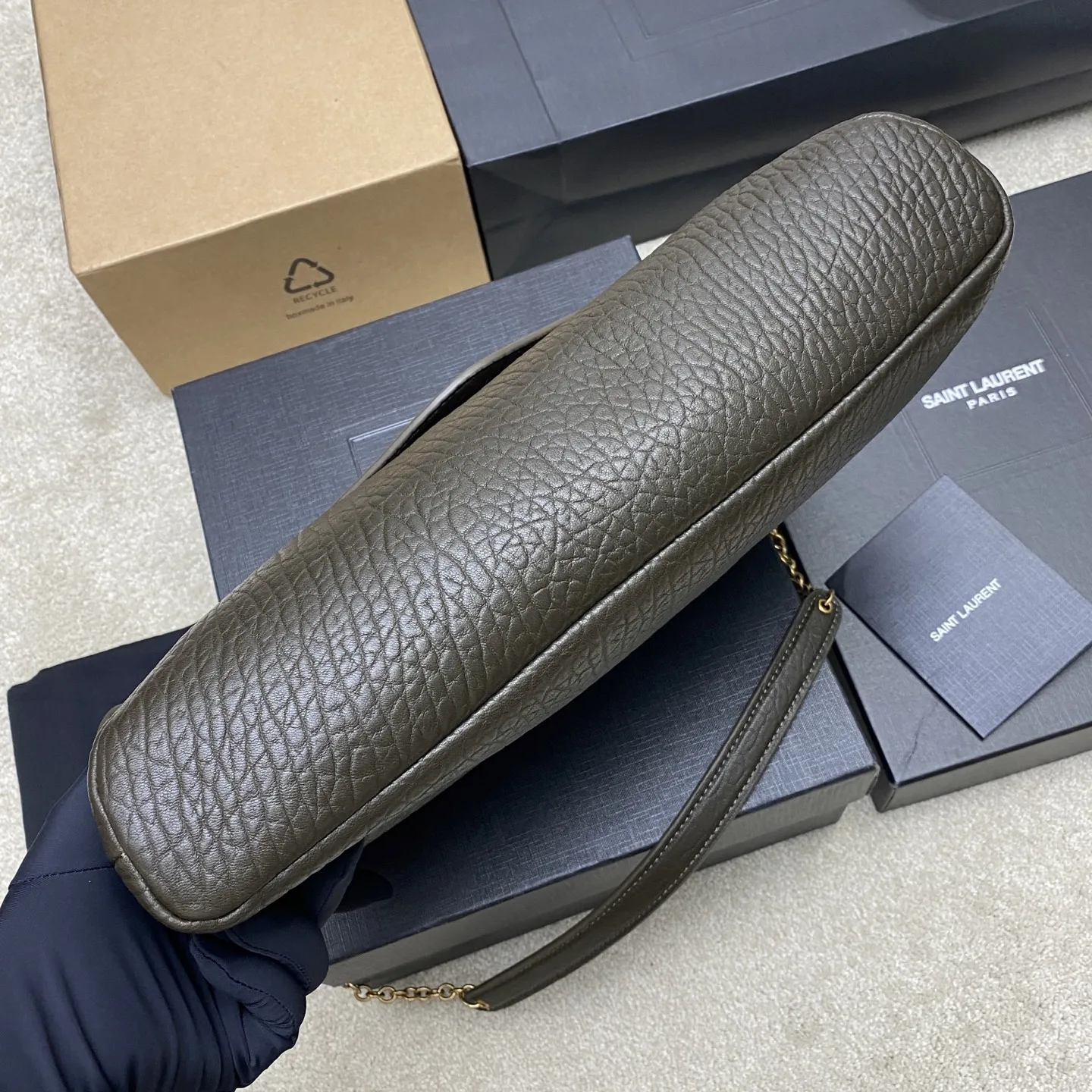 The new gold YSL envelope oversized clutch with a green elephant pattern is here! Made of grained lambskin with a rich texture! This bag has a very urban style, and the shoulder bag style is very fashionable. The bag has a good amount of space!