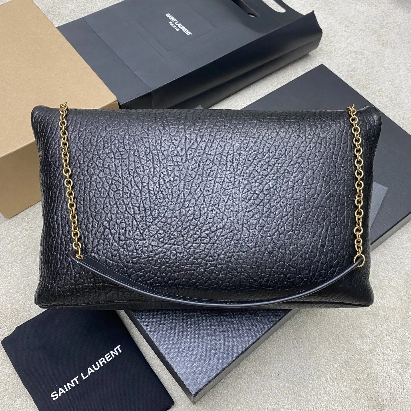The new gold-tone YSL envelope oversized clutch with a black elephant pattern is here! Made of grained lambskin with a rich texture! This bag has a very urban style, and the shoulder bag carrying method is very fashionable. The bag has a good amount of space!