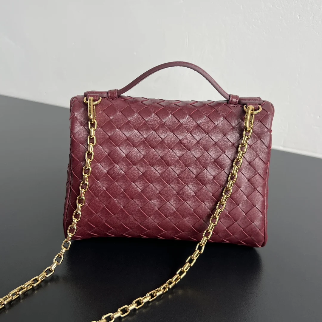 BV Soft Vanity chain makeup bag 843800, crafted with 0.75 lambskin Intrecciato weave. A timeless classic, this structured yet soft silhouette balances fashion and practicality. The detachable chain strap allows for crossbody or hand carry, complementing various outfits and adding a touch of elegance to your early autumn looks, whether for business commutes or casual, vintage-inspired styles. Dimensions: 19x14x3.