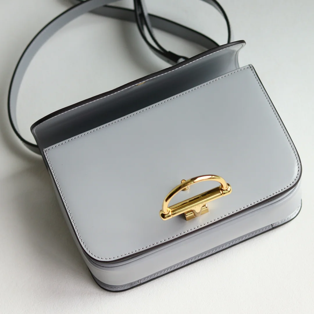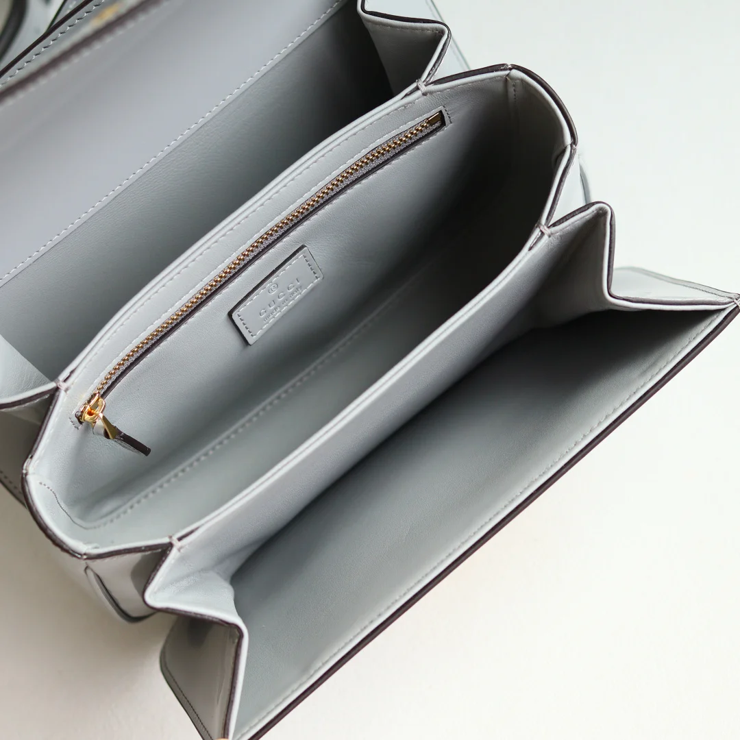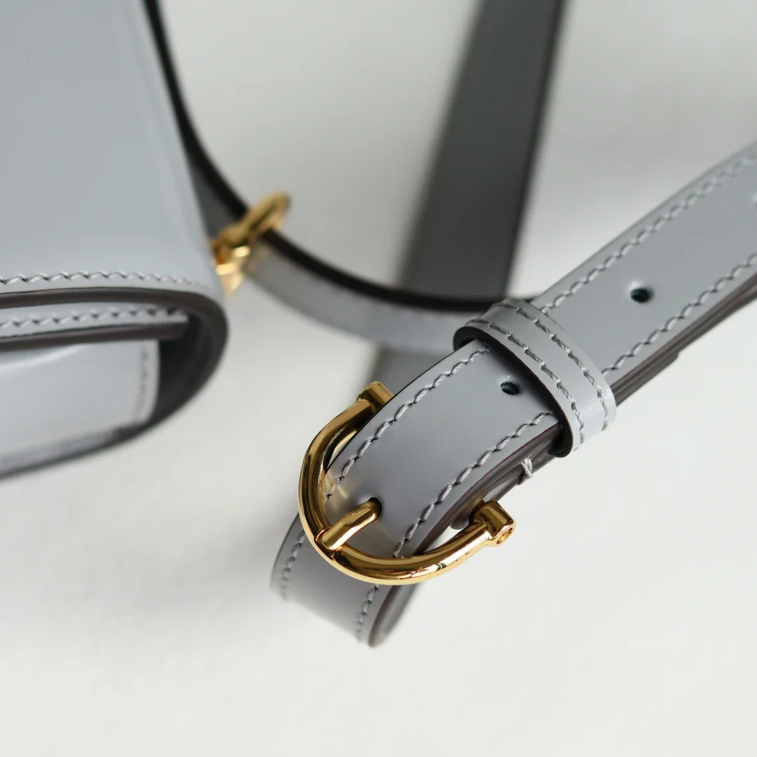The Gu Siena small shoulder bag continues the evolution of Gucci s iconic Horsebit hardware. Crafted from fine, smooth leather, this shoulder bag features a structured silhouette with a semi-Horsebit clasp design detail inspired by the 1970s, complemented by gold-toned hardware. The interior lining features three compartments and a zipper pocket. Siena Shoulder Bag Model 846705 Grey Size 22.5*14*8