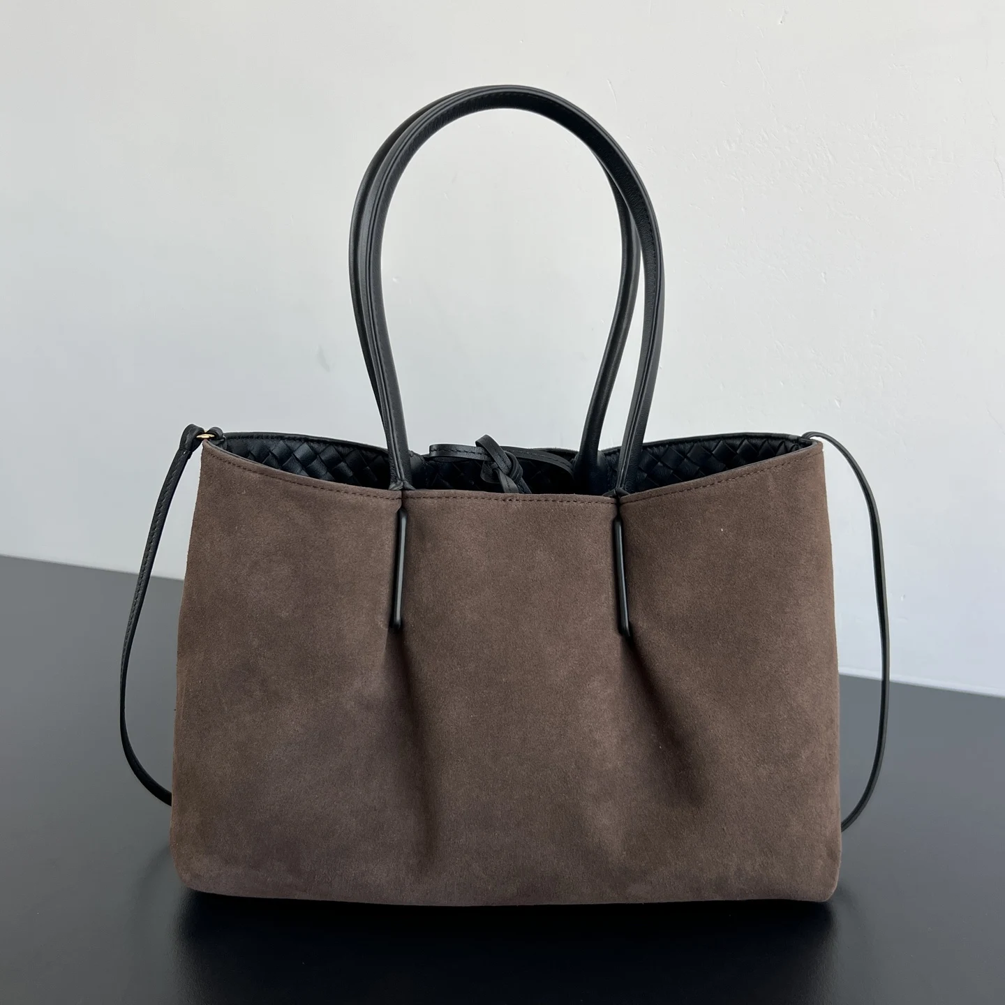 BV 2025 Early Spring New 854371 Pinacoteca Medium Tote Bag features BV s iconic woven craftsmanship. It has a reversible, smooth deerskin lining for dual-sided use, combining fashion and practicality. The four leather straps on the bag also embody unique personality elements, exquisite and creative. With a minimalist silhouette and light tones, it has an understated and sophisticated appearance, suitable for both shoulder and hand carry! P1040 Size: 34*20*14cm