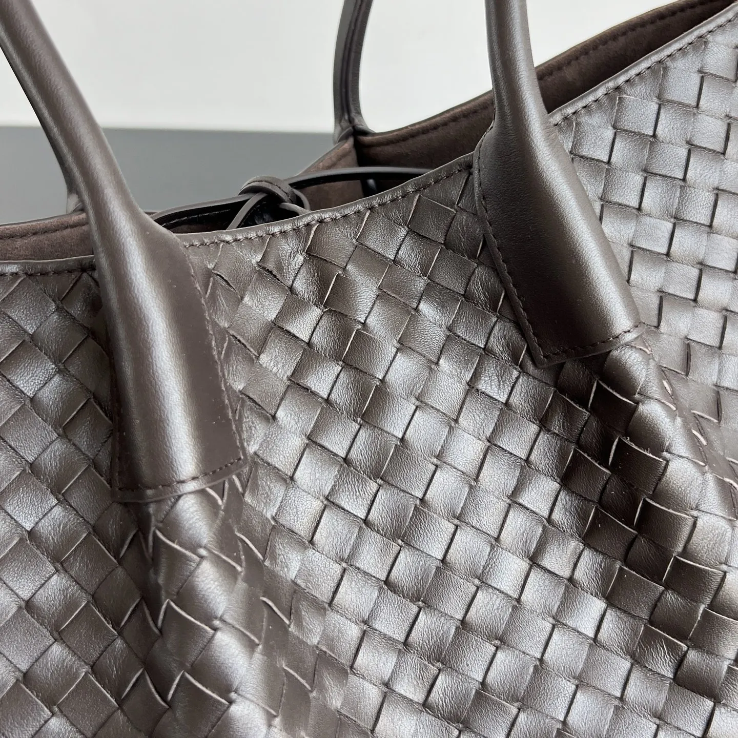 BV 2025 Early Spring New 854371 Pinacoteca Medium Tote Bag features BV s iconic woven craftsmanship. It has a smooth deerskin lining that can be reversed for dual use, combining fa..