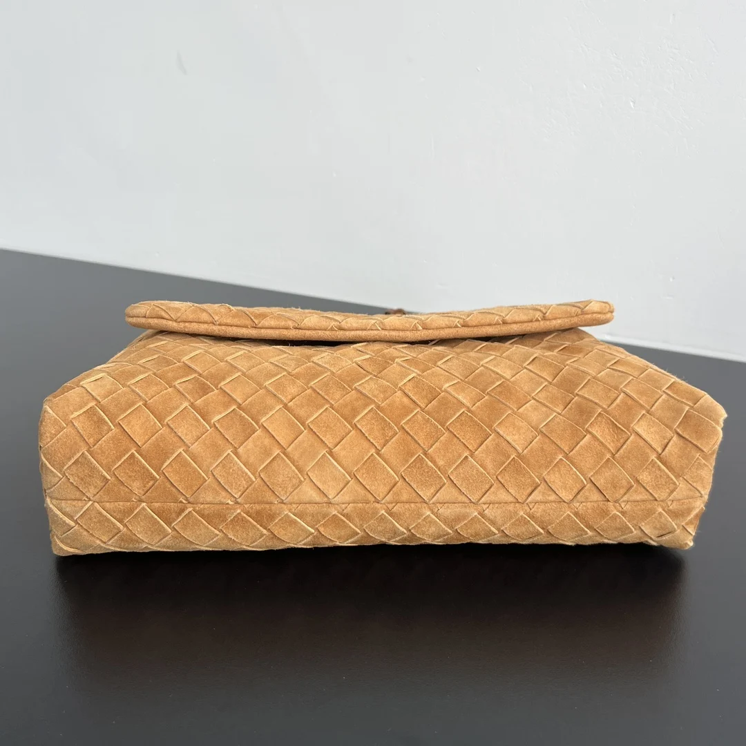 BV New Arrival Suede Dustbag 857657. The suede dustbag that everyone s been asking about is here! The flap design not only enhances the visual layering but also makes the overall look refined without being bulky. The bag is made of soft suede material, which feels soft and delicate to the touch, revealing a low-key, matte, and high-end feel. The flap drawstring closure adds a three-dimensional and secure feel overall. Whether used as a shoulder bag or a crossbody bag, it exudes an elegant temperament. Size: 33x19x8