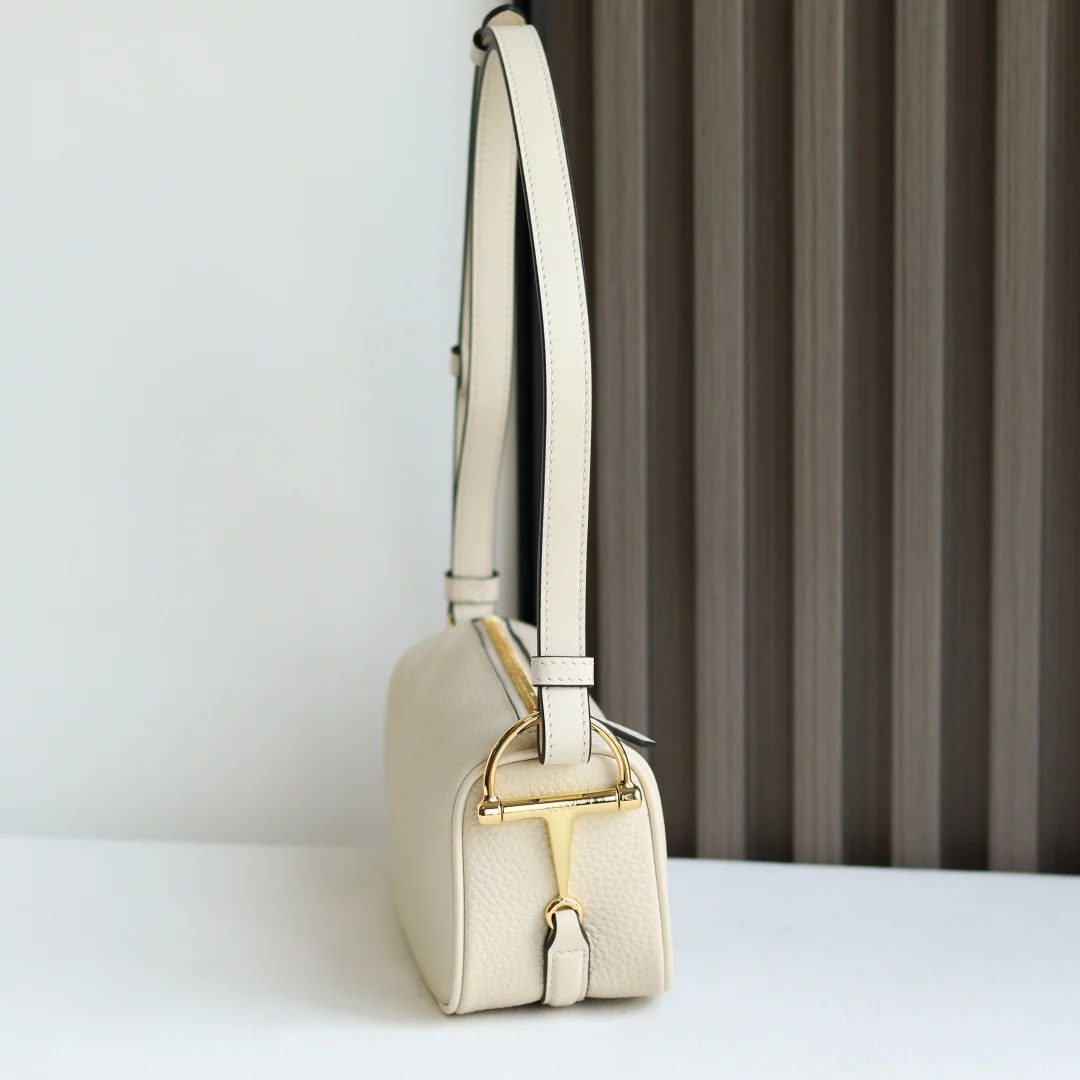 The brand reinterprets iconic elements with a contemporary perspective, updating the Gucci Horsebit design and infusing classic accessories with a new sense of style using supple calfskin that conforms to the body. This mini bag is crafted from grained soft leather and features a Horsebit detail on the side.- Brown grained soft leather- Light gold-toned hardware- Tonal cotton linen lining- Horsebit- Leather strap (23cm drop)- Zipper closure- Model: 860784- Dimensions: 19cm (W) x 19.5cm (H) x 9cm (D)- Color: Off-white, Full Leather