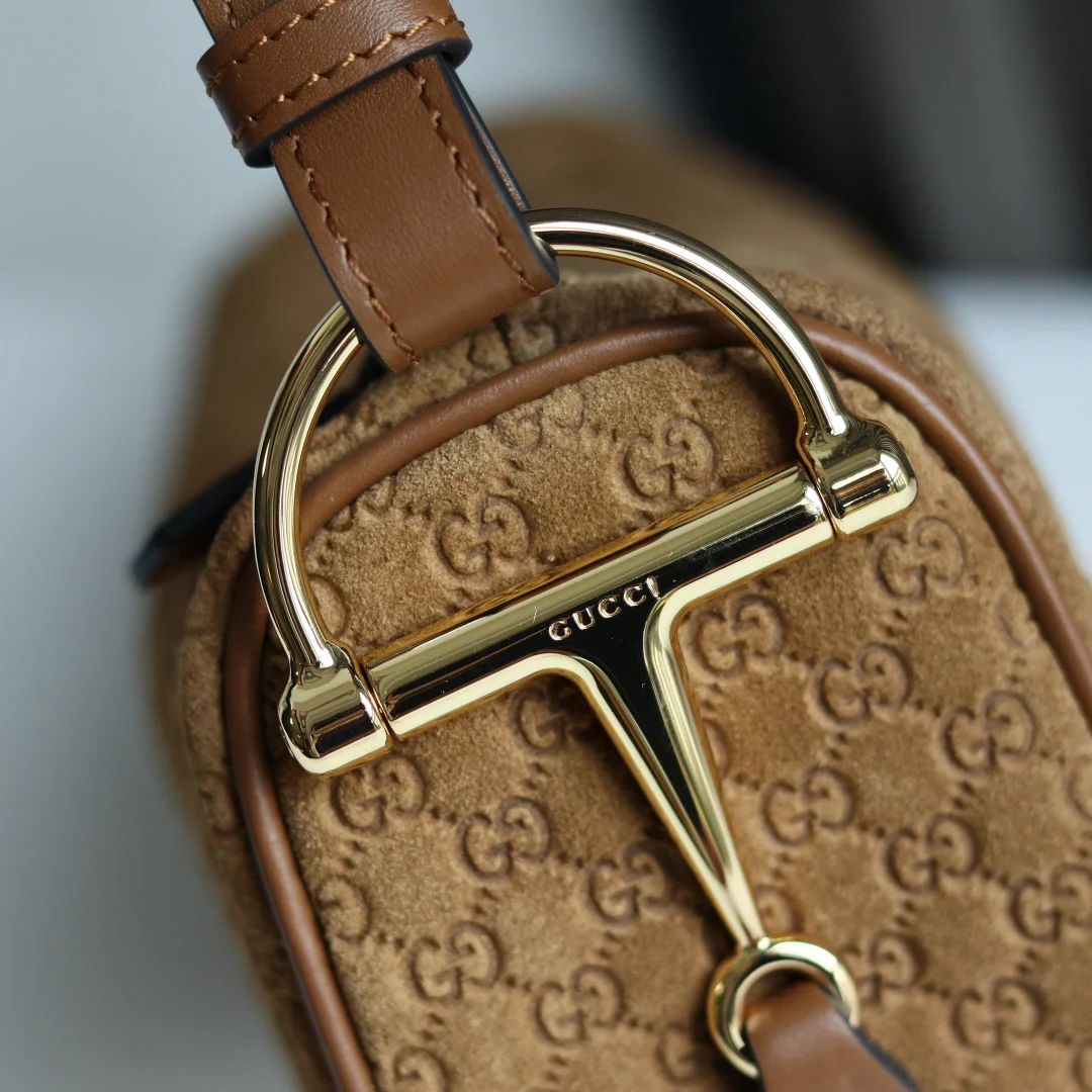 The brand reinterprets iconic elements with a contemporary perspective, updating the Gucci Horsebit design and infusing classic accessories with a new sense of style using supple calfskin that conforms to the body. This mini bag is crafted from grained soft leather and features Horsebit details on the sides.- Brown grained soft leather- Light gold-toned hardware- Tonal cotton linen lining- Horsebit- Leather strap (23cm drop)- Zipper closure- Model: 860784- Dimensions: 19cm (W) x 19.5cm (H) x 9cm (D)- Color: Suede Brown Full Leather