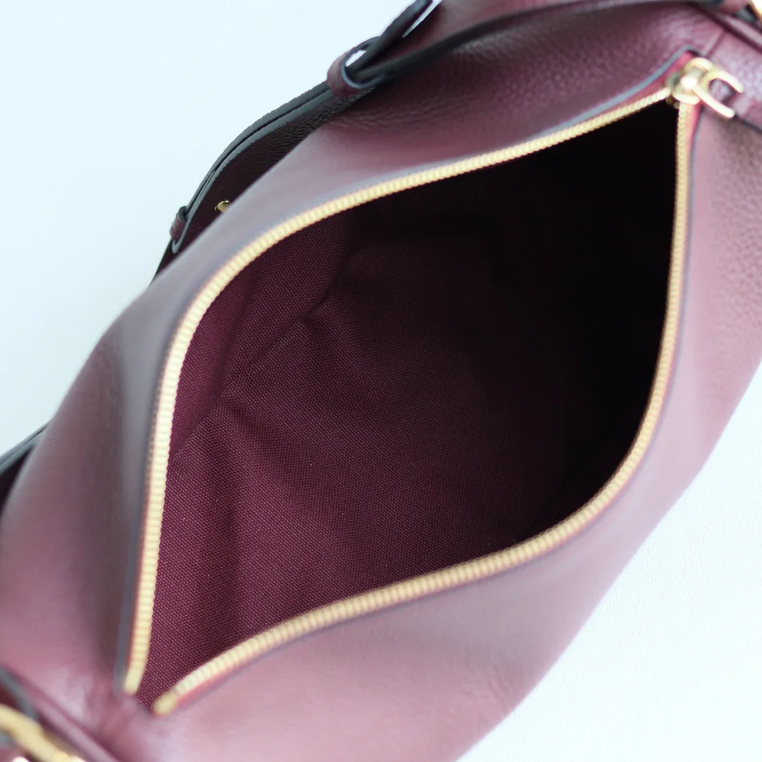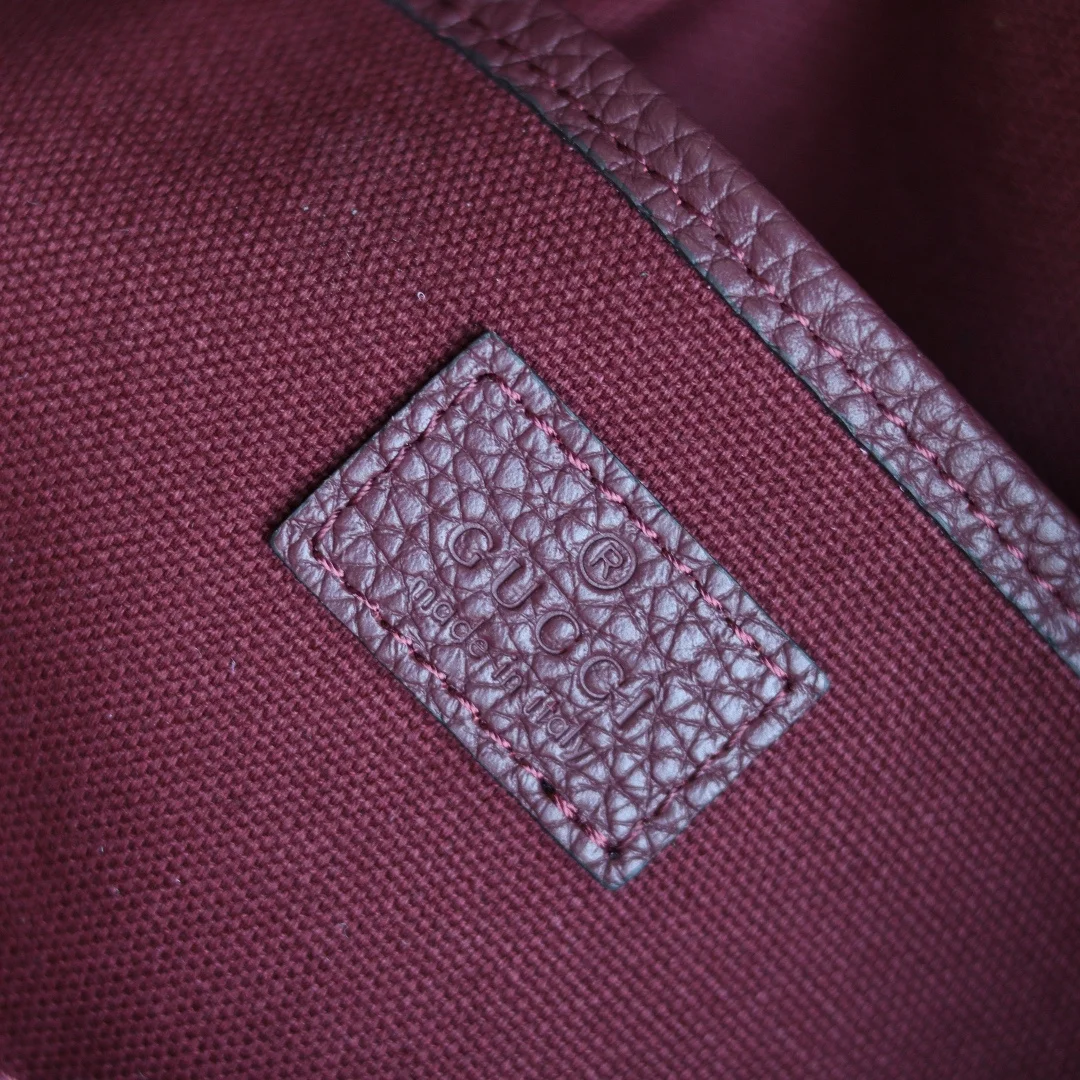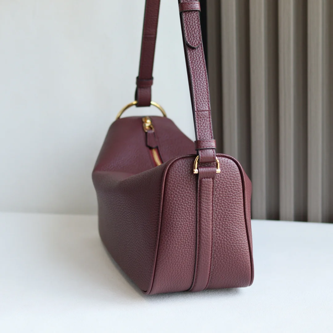 The Half Horsebit large shoulder bag is a modern reinterpretation of one of the brand s most iconic elements. This collection cleverly blends a casual silhouette with the signature Half Horsebit hardware, from which it derives its name. Interior: one open pocket, adjustable leather shoulder strap, style number 860787 burgundy leather, dimensions: W31.5 x H17 x D12 cm.