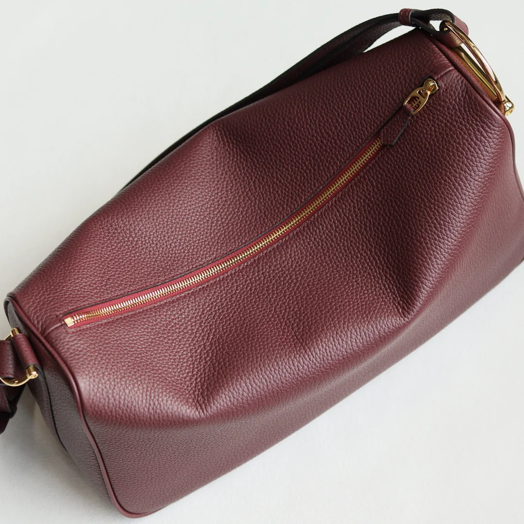 The Gucci Half Horsebit large shoulder bag is reimagined with a modern twist, updating one of the brand s most iconic elements. This collection cleverly blends a casual silhouette with the signature Half Horsebit hardware, from which it derives its name. Interior: one open pocket, adjustable leather shoulder strap, style number 862530 burgundy, dimensions 38X20X15.