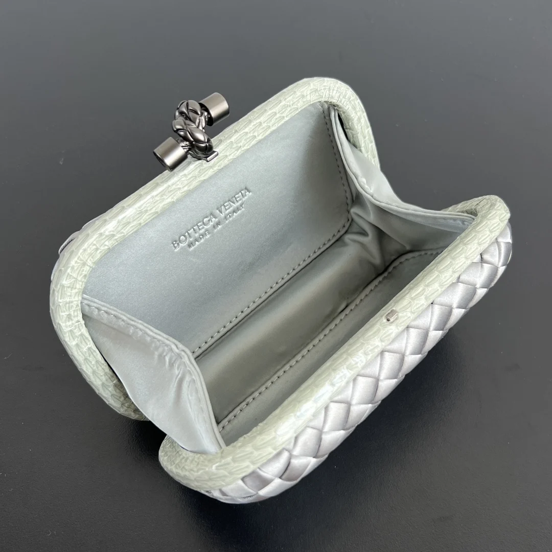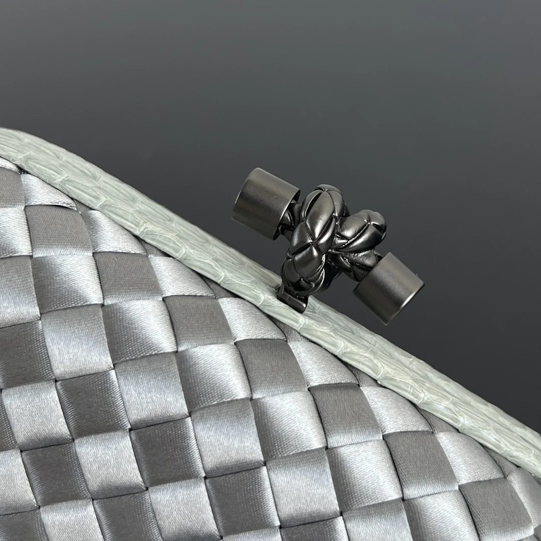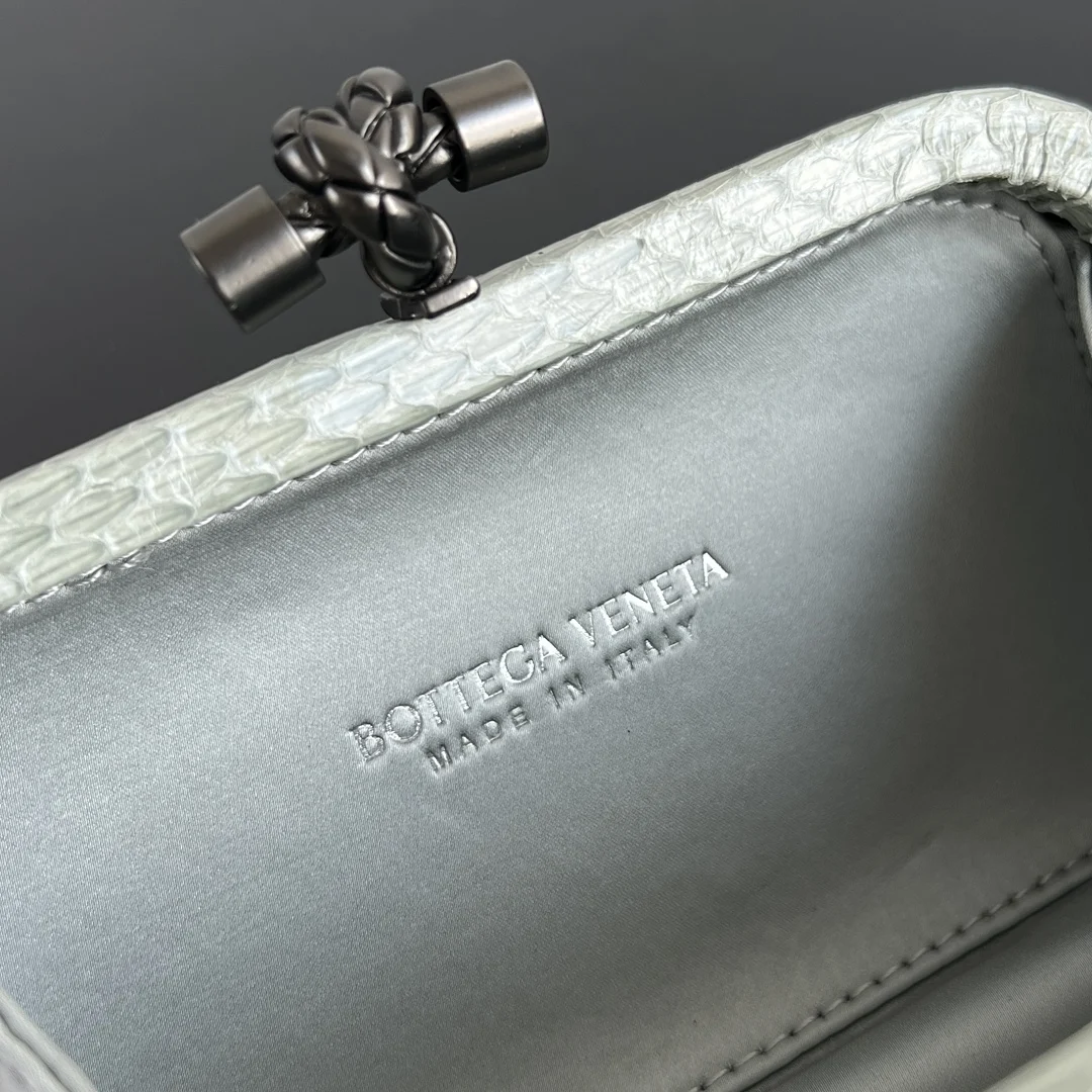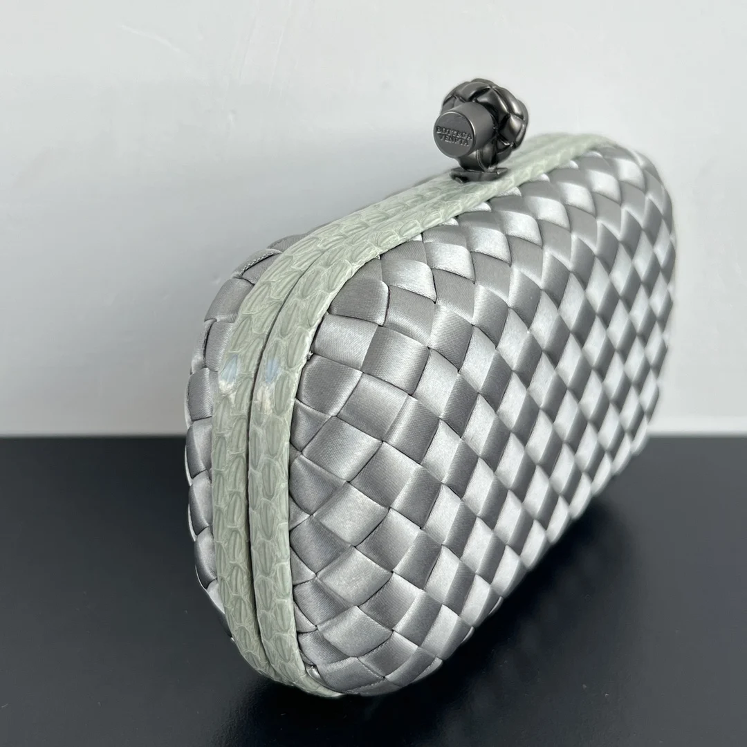 BV Knot woven clutch series (8651 16cm) Each bag reveals exquisite elegance with iconic classic silk weaving snakeskin trim, paired with a knot clasp. The texture is soft and d..