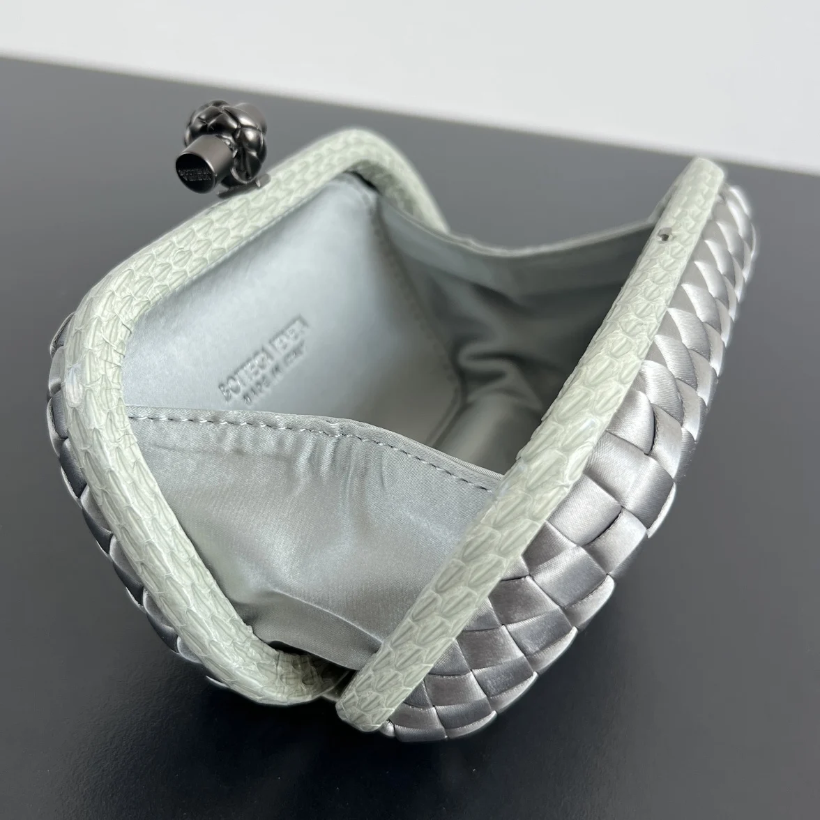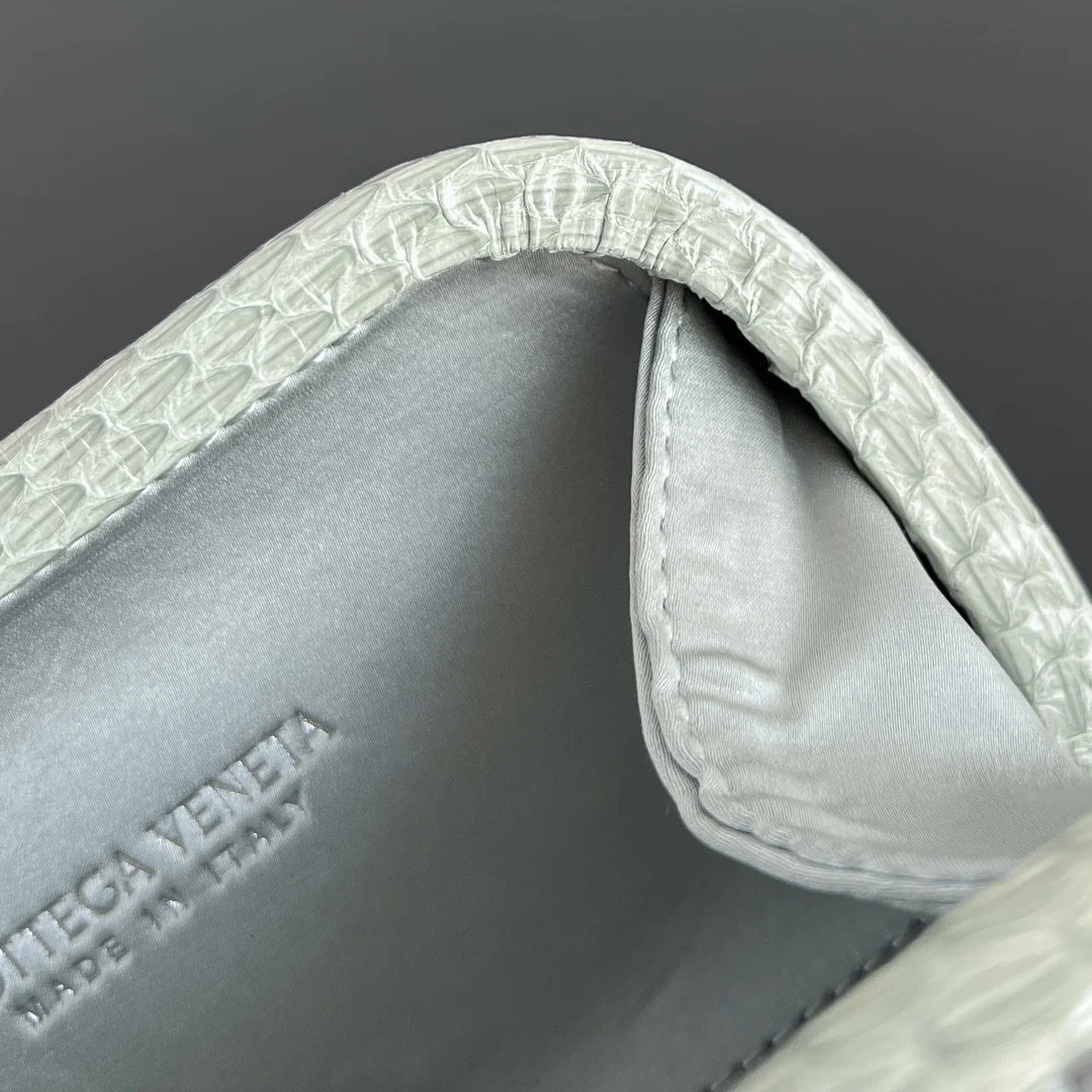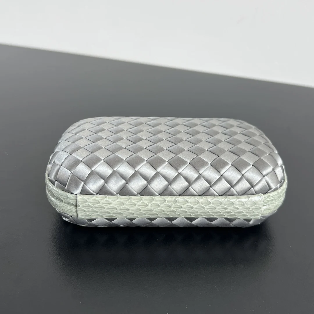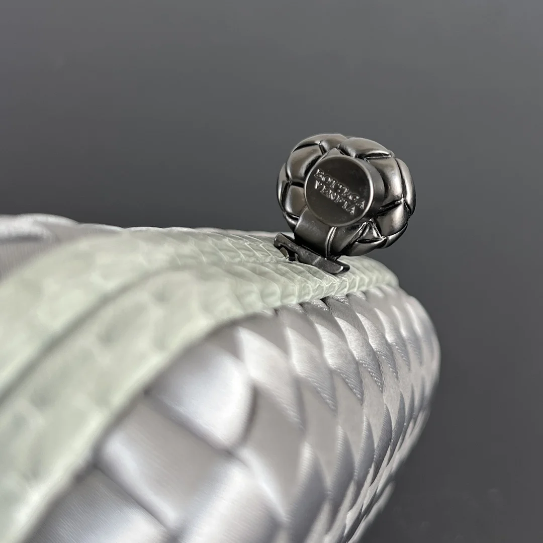 BV Knot woven clutch series (8651 16cm) Each bag reveals exquisite elegance with iconic classic silk weaving snakeskin trim, paired with a knot clasp. The texture is soft and d..