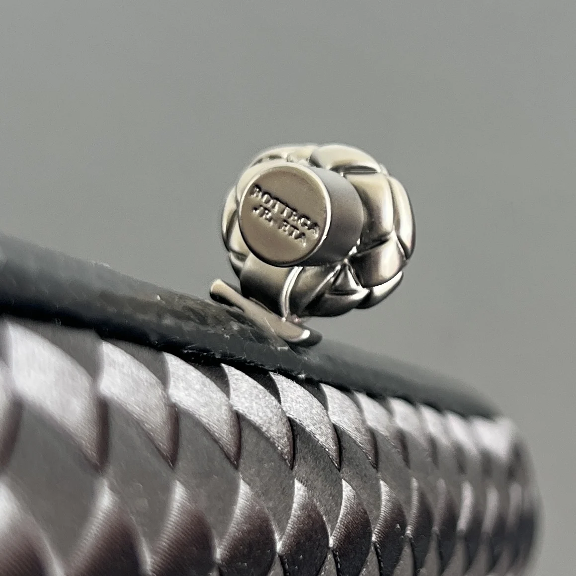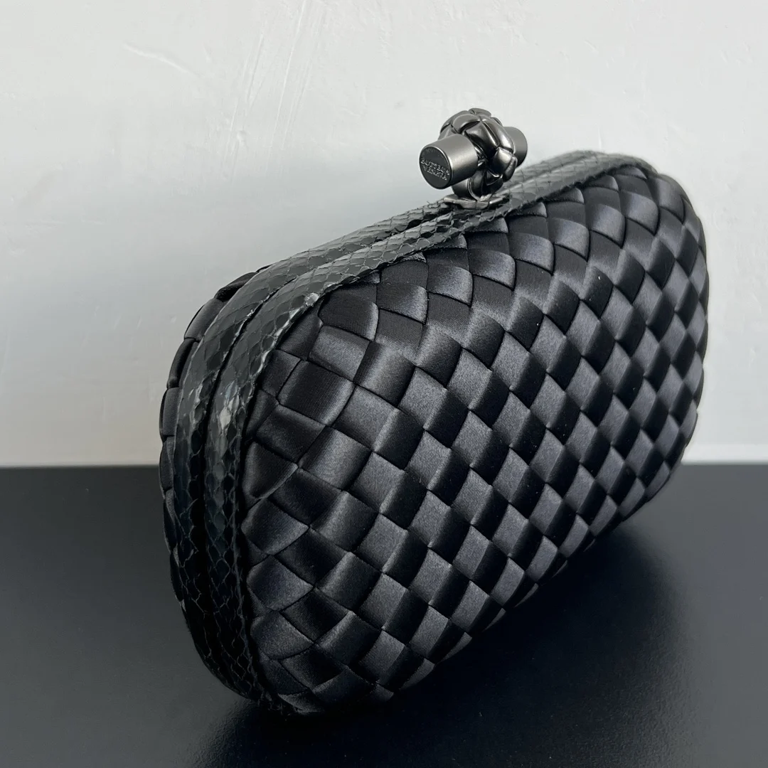 BV Knot woven clutch series (8651 16cm) Each bag reveals exquisite elegance with iconic classic silk weaving snakeskin trim, paired with a knot clasp. The texture is soft and d..