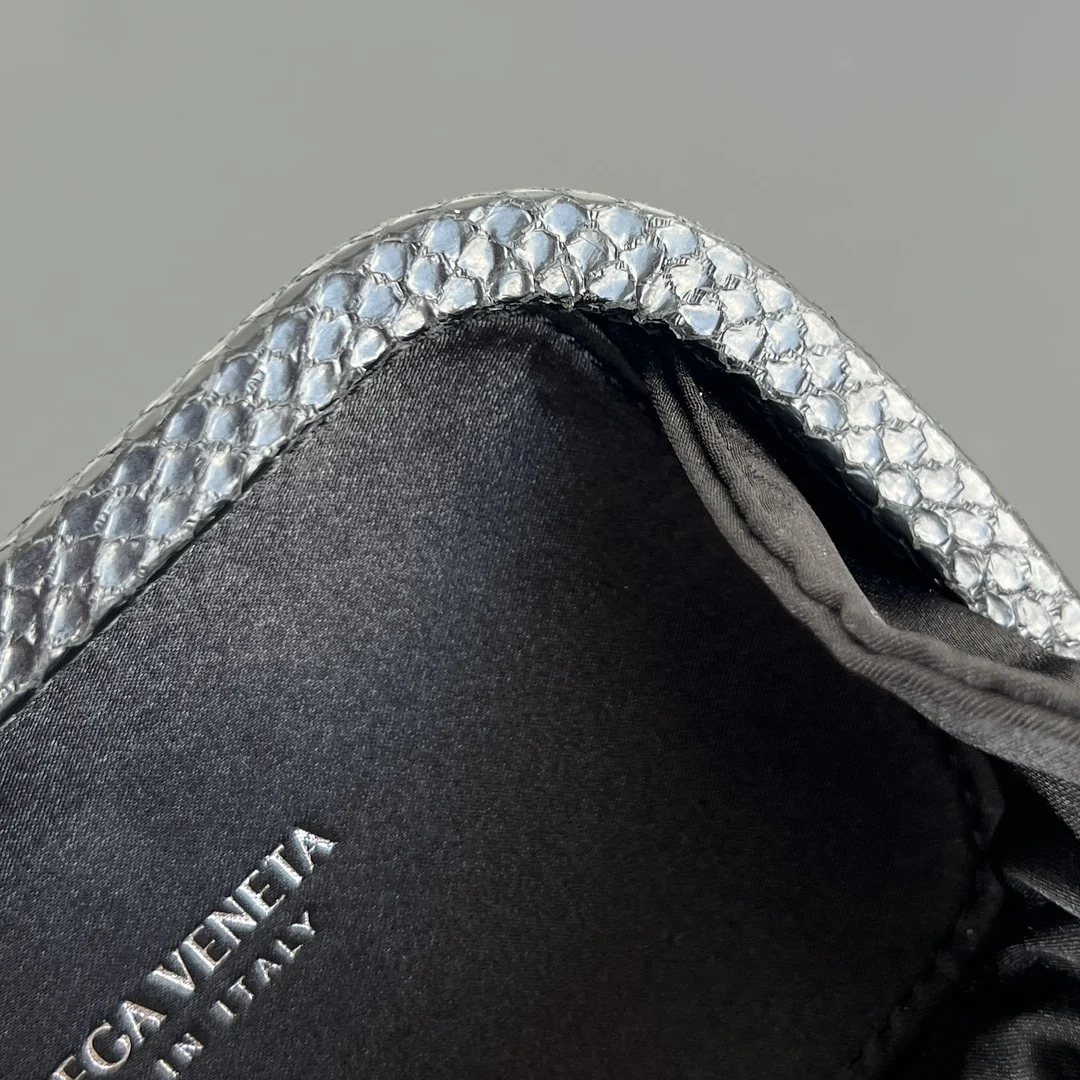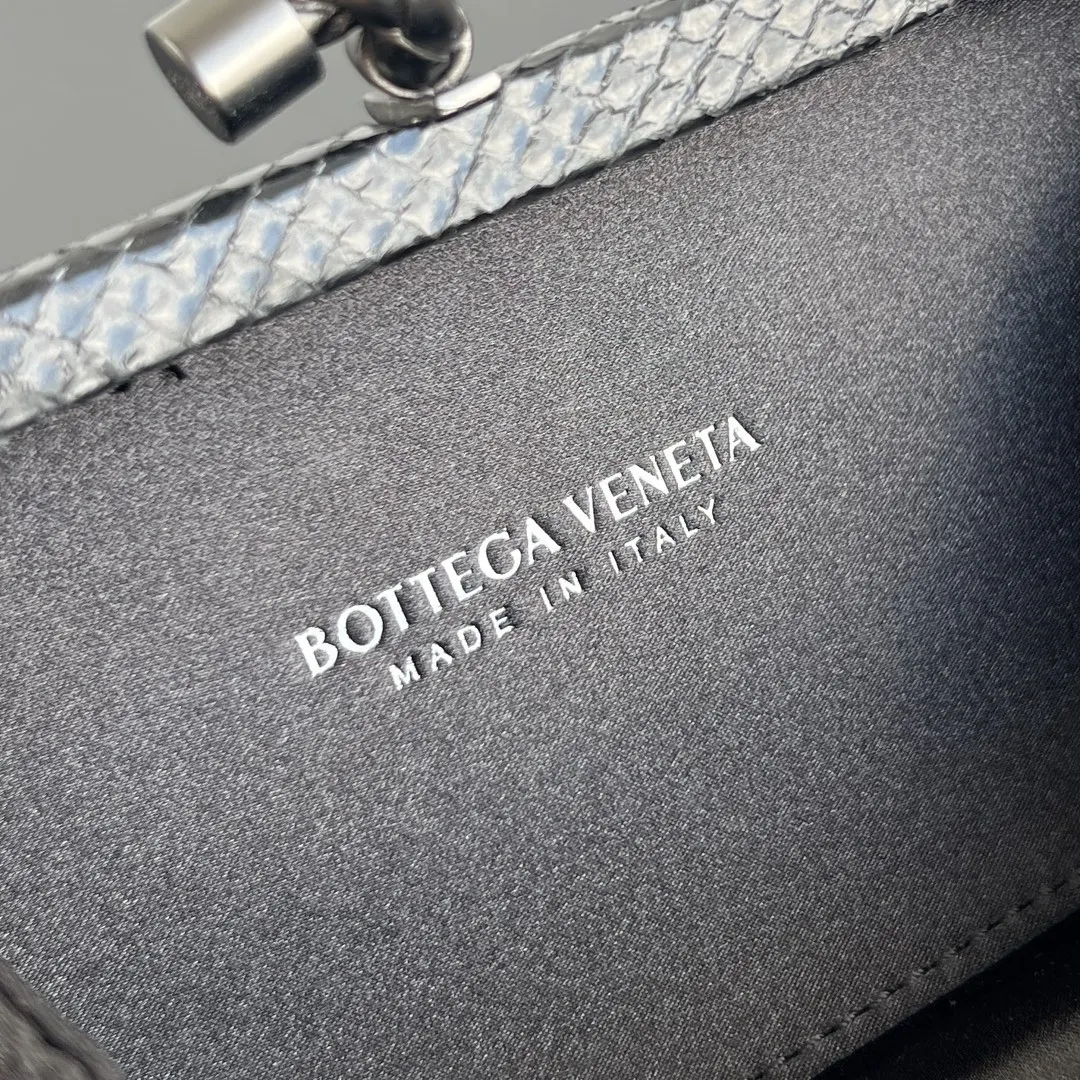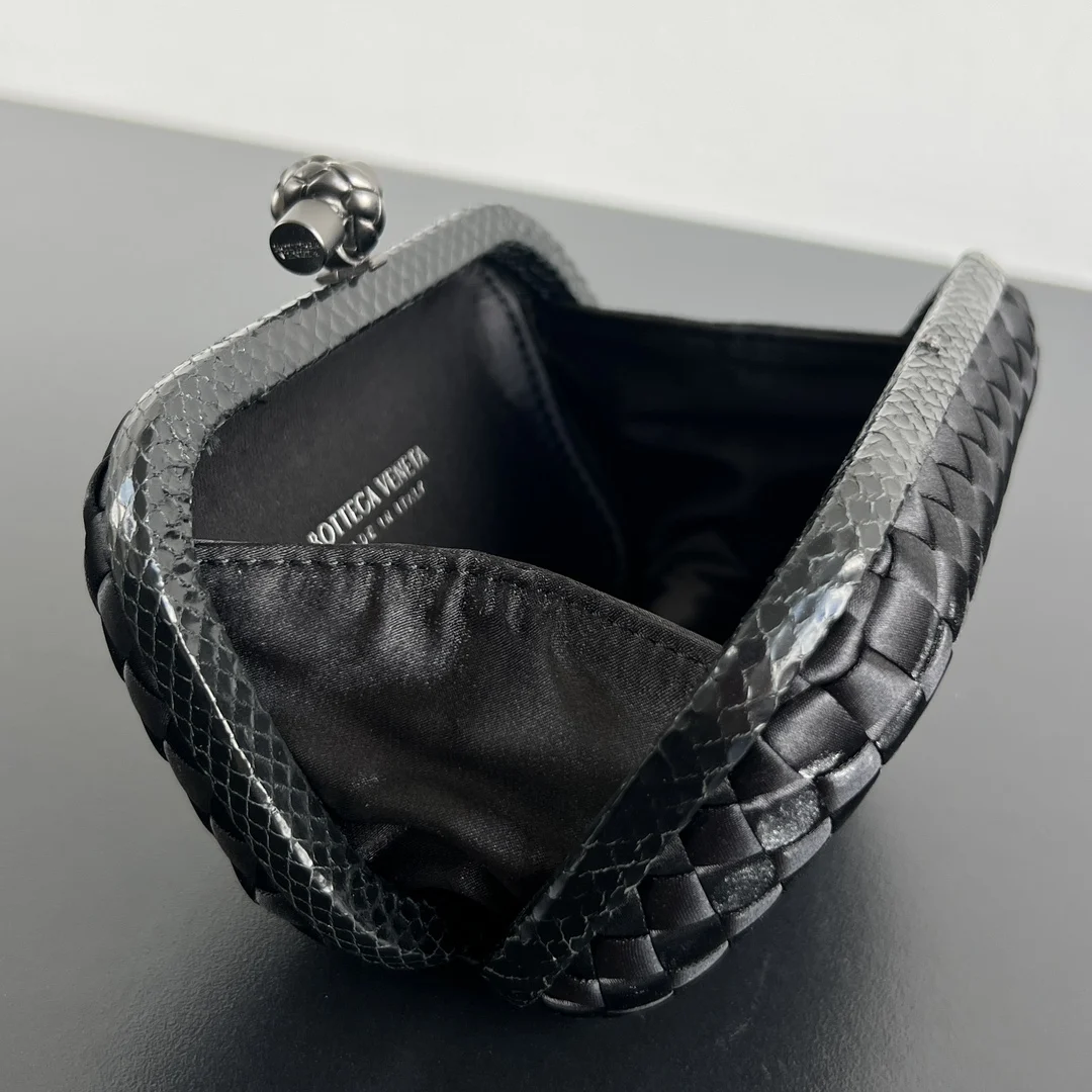BV Knot woven clutch series (8651 16cm) Each bag reveals exquisite elegance with iconic classic silk weaving snakeskin trim, paired with a knot clasp. The texture is soft and delicate. The design is small and refined, with understated no-logo branding, simple and elegant. It creates an atmosphere of a wealthy heiress when paired with an evening dress or cheongsam, exuding a powerful aura and unparalleled texture. Dimensions: 16x10x5