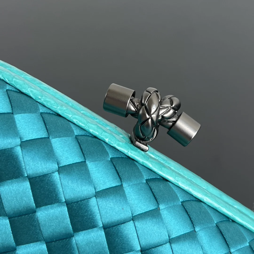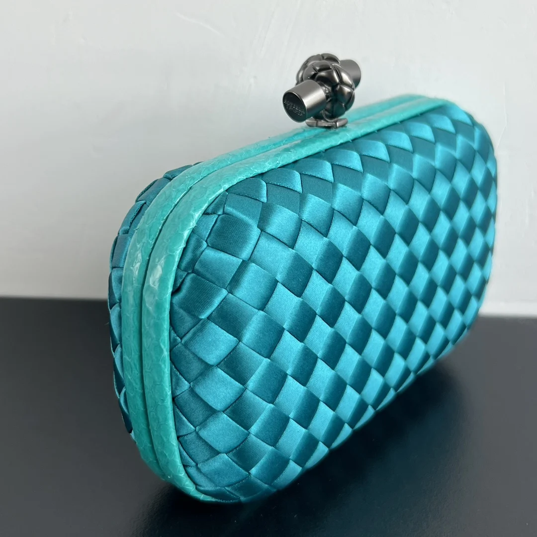 BV Knot woven clutch series (8651 16cm) Each bag reveals exquisite elegance Signature classic silk weave snakeskin trim with knot clasp, soft and delicate to the touch. The d..
