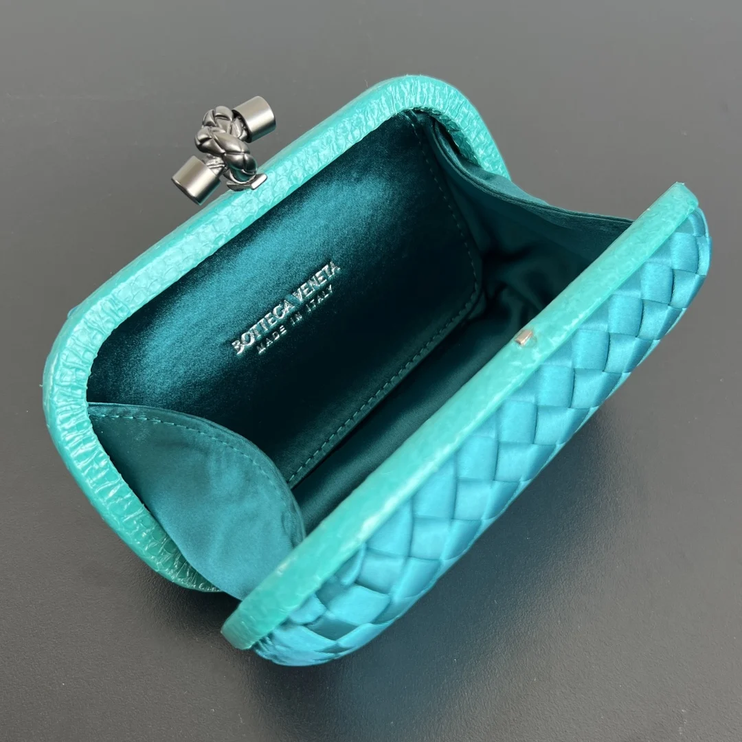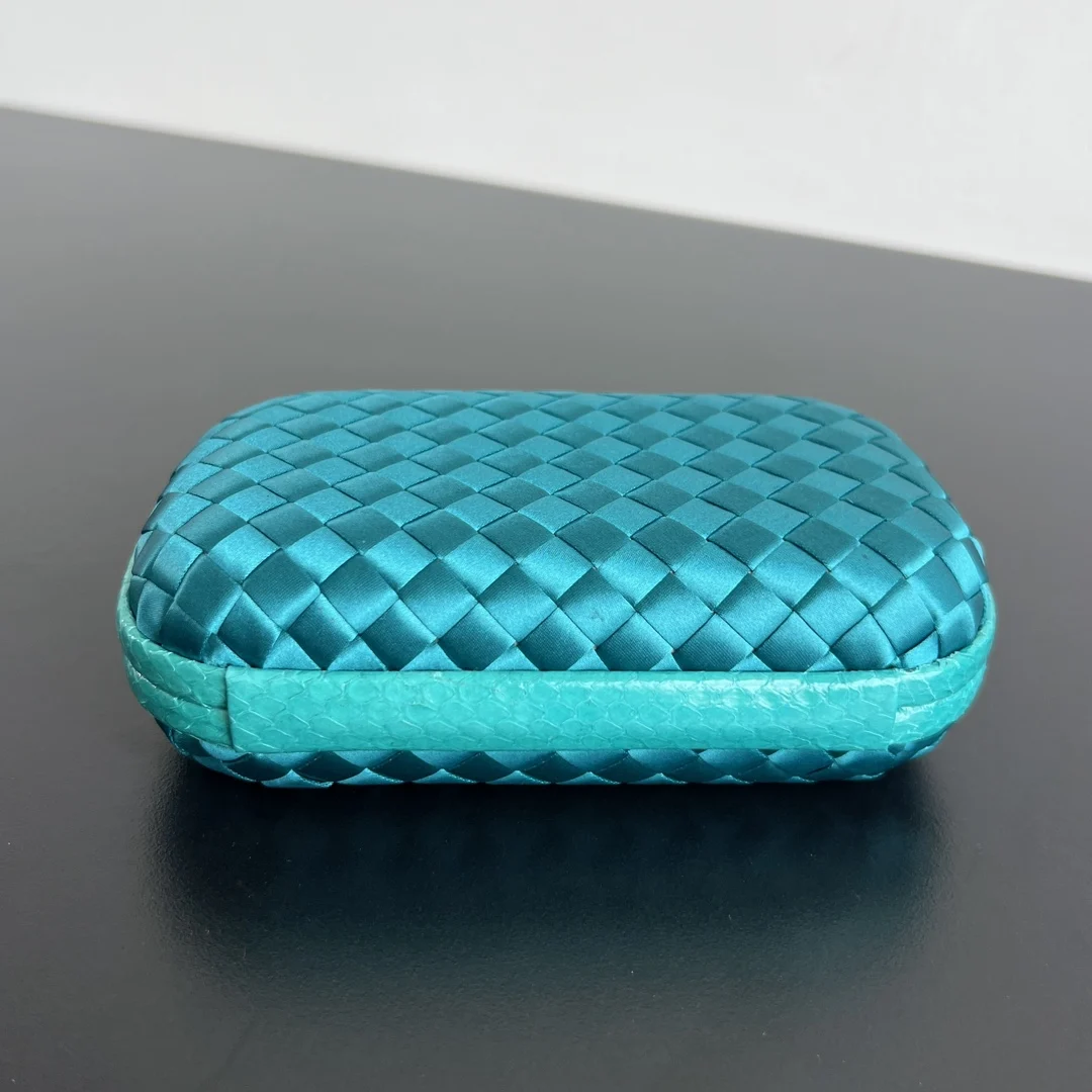 BV Knot woven clutch series (8651 16cm) Each bag reveals exquisite elegance Signature classic silk weave snakeskin trim with knot clasp, soft and delicate to the touch. The design is small and refined, with understated no-logo design, simple and elegant. Perfect with evening gowns or cheongsams, creating an atmosphere of a wealthy heiress, full of aura and invincible texture. Dimensions: 16x10x5
