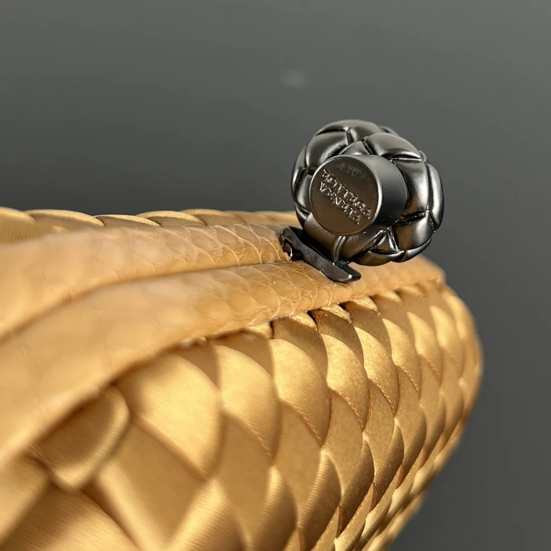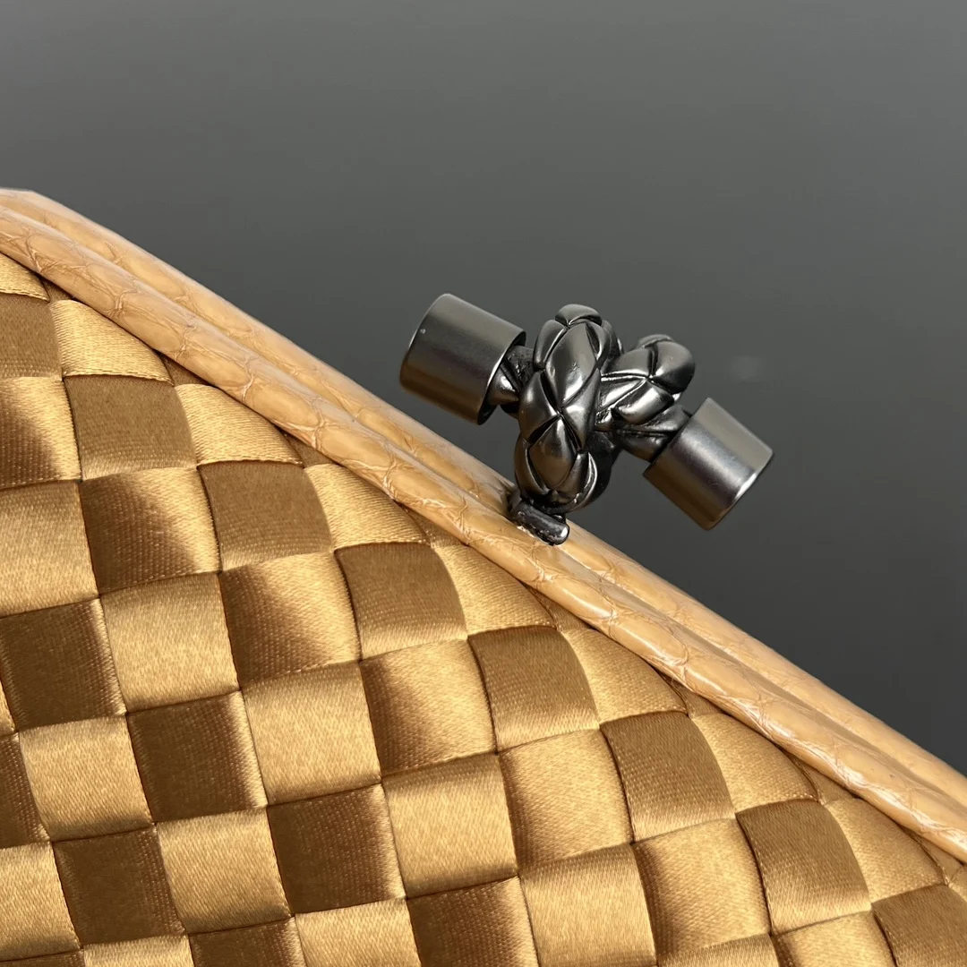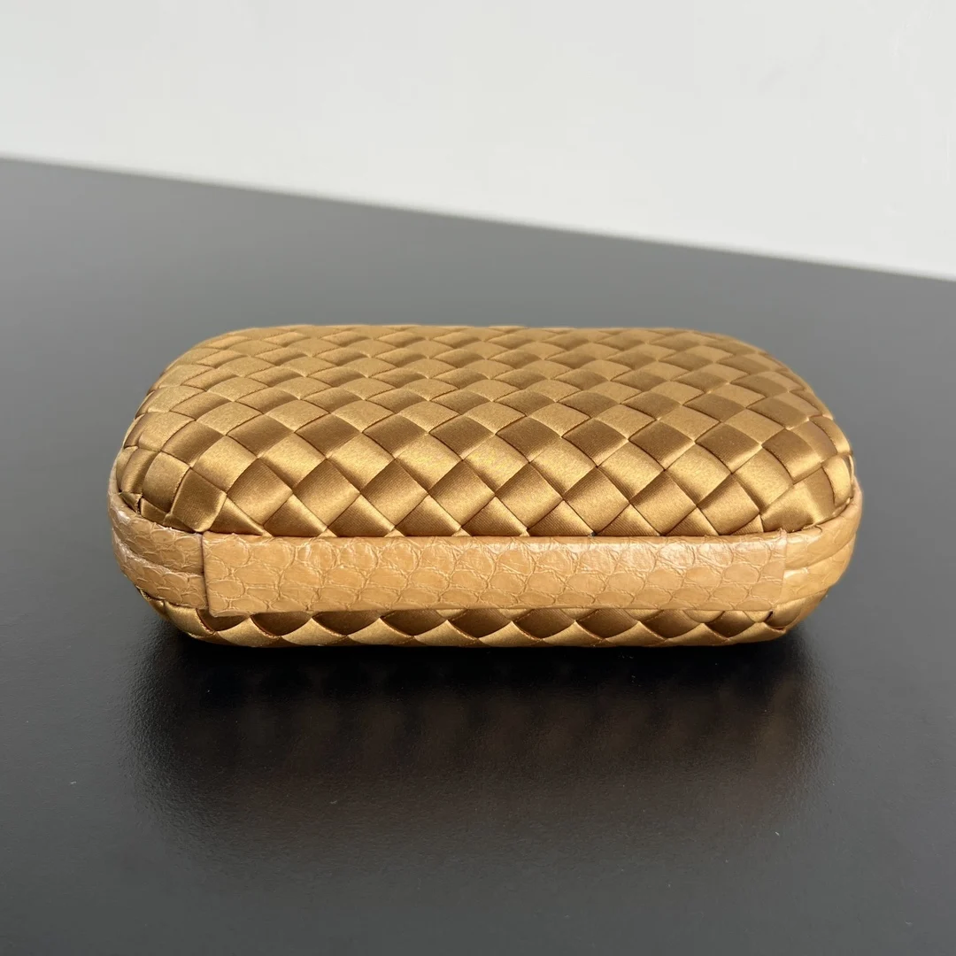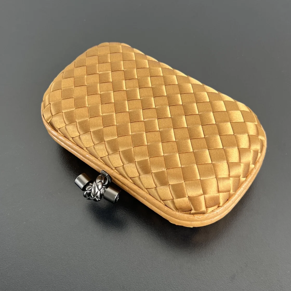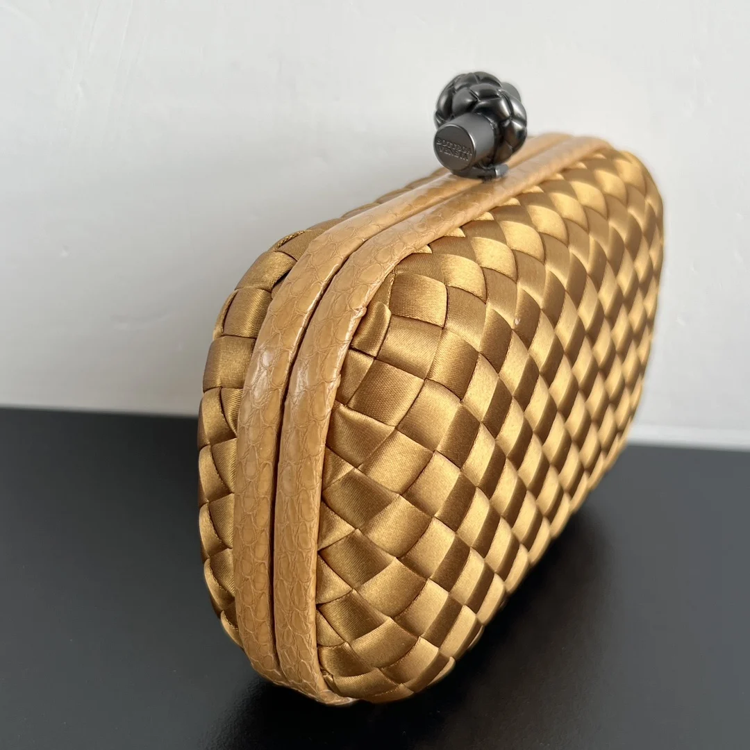 BV Knot woven clutch series (8651 16cm) Each bag exudes exquisite elegance Signature classic silk weave snakeskin trim with knot clasp, soft and delicate to the touch. The design is small and refined, with understated no-logo branding, simple and elegant. Perfect with evening gowns or cheongsams, creating an atmosphere of a wealthy heiress, full of aura and invincible texture. Dimensions: 16x10x5