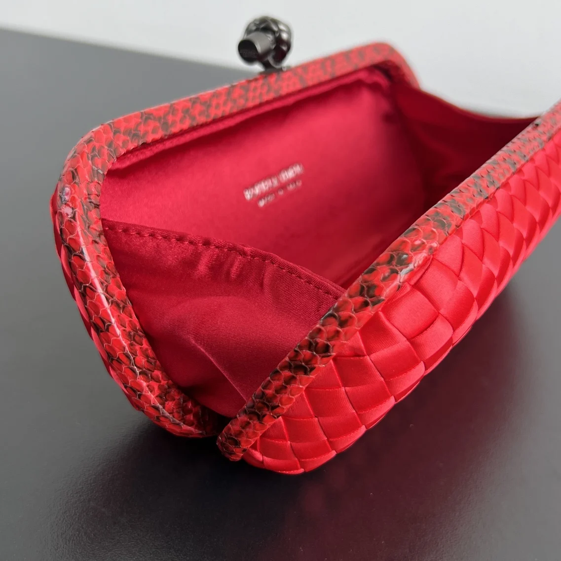 BV New Kont Clutch (8651 25cm) - This dazzling clutch exudes a festive spirit, making it both beautiful and practical. It s your statement entrance piece for any evening event. Crafted with classic silk weaving, it possesses a jewel-like opulence, adding a visual impact to a subdued wardrobe. Luxurious and romantic, it will become a unique collectible in your bag collection. Dimensions: 25x10x5