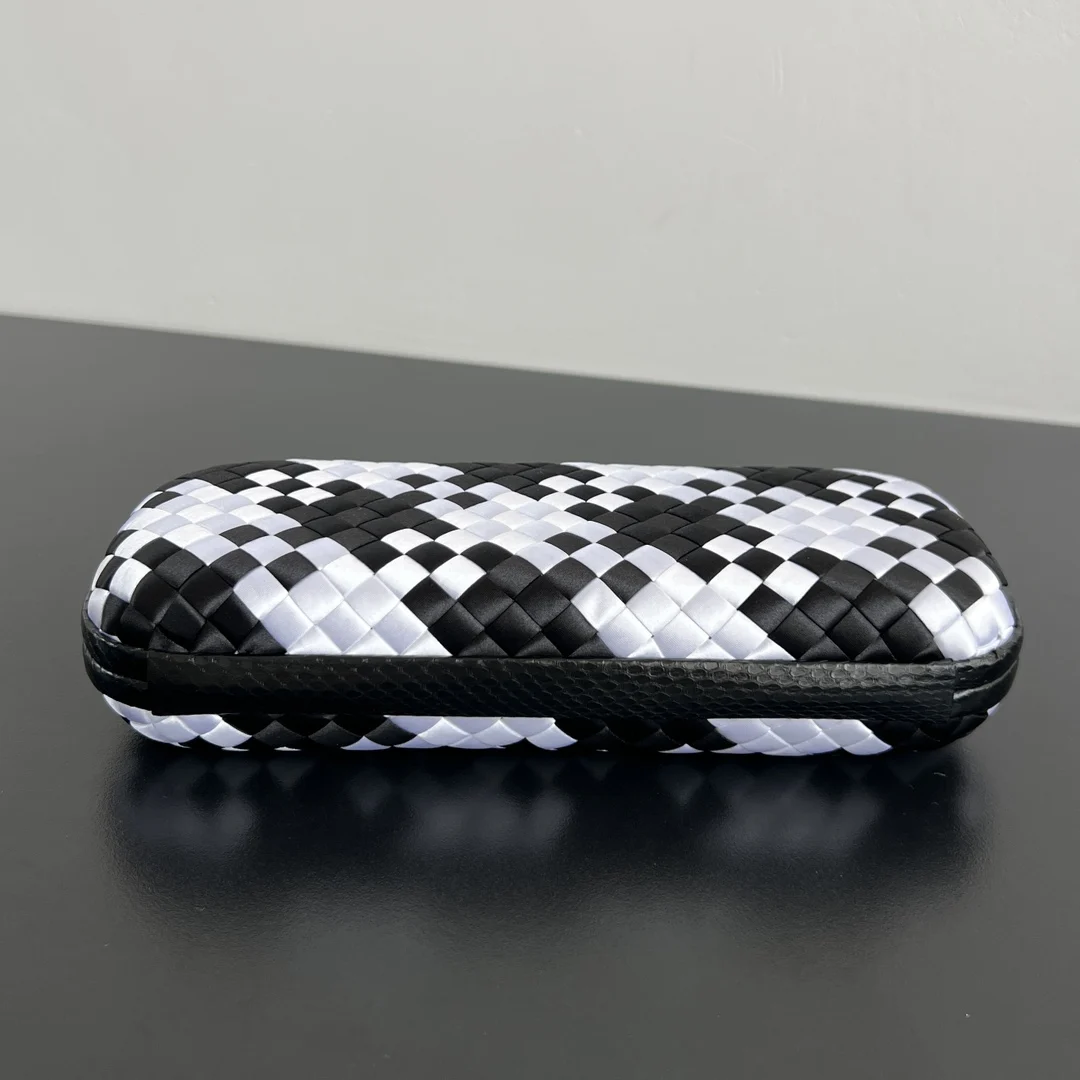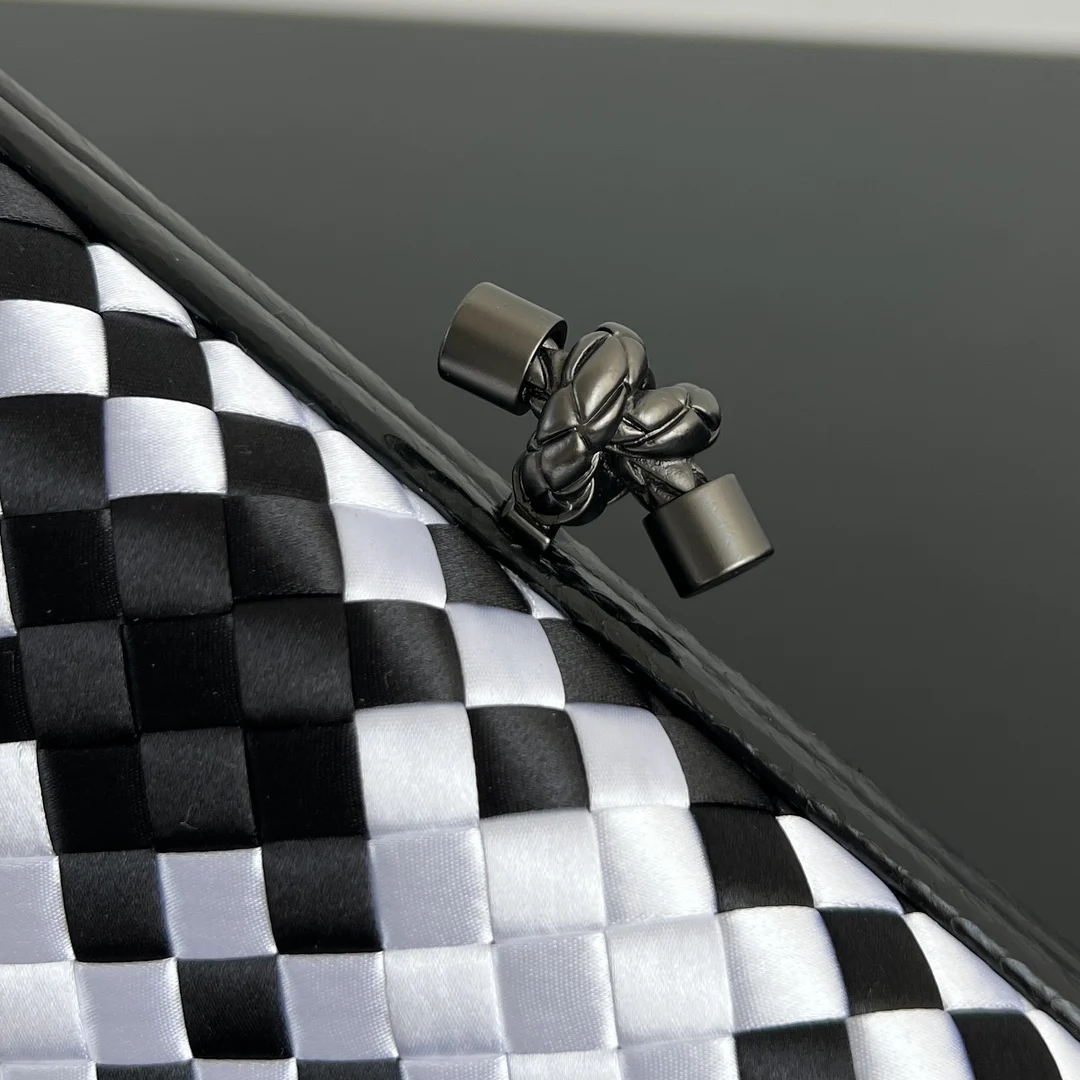 BV New Kont Evening Bag (8651 25cm). This dazzling evening bag is full of festive spirit, beautiful and practical. It is your entry ticket to any party. Crafted from classic silk weave, it exudes the opulence of gold and silver jewelry, bringing a visual impact to a dull wardrobe. Luxurious and romantic, it will remain a special collection piece in your bag wardrobe. Dimensions: 25x10x5.