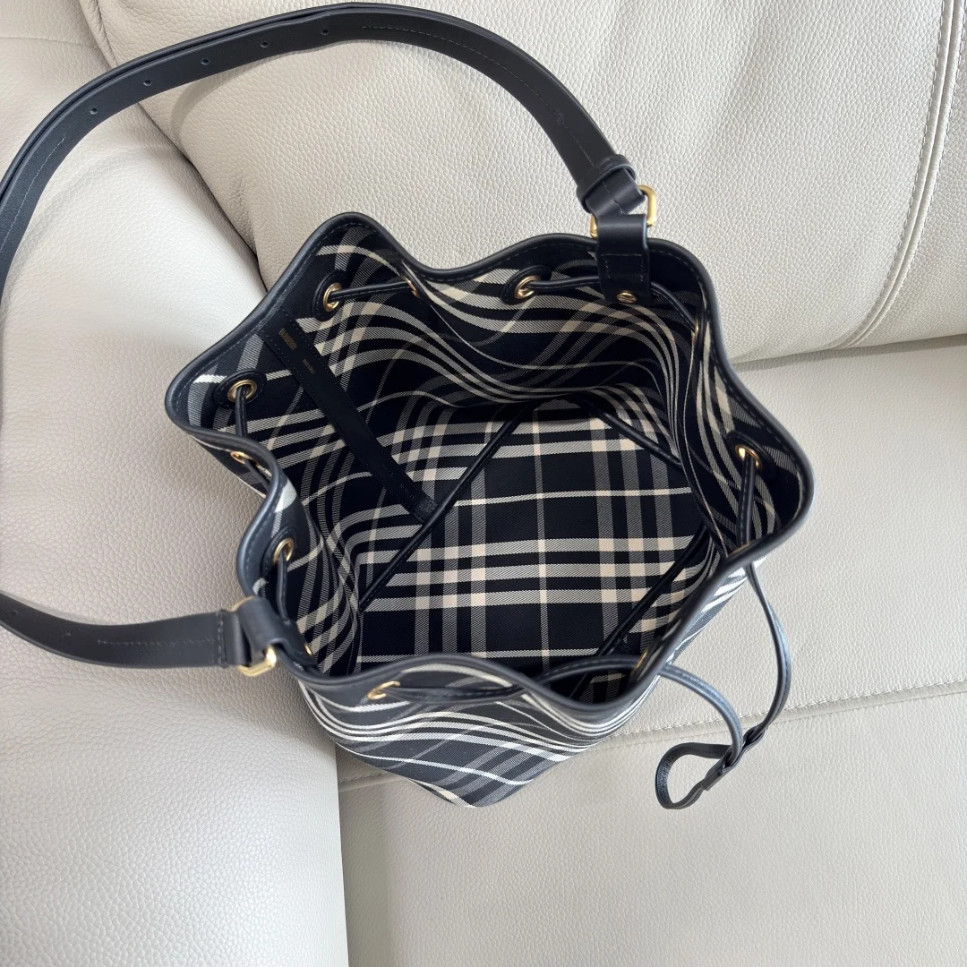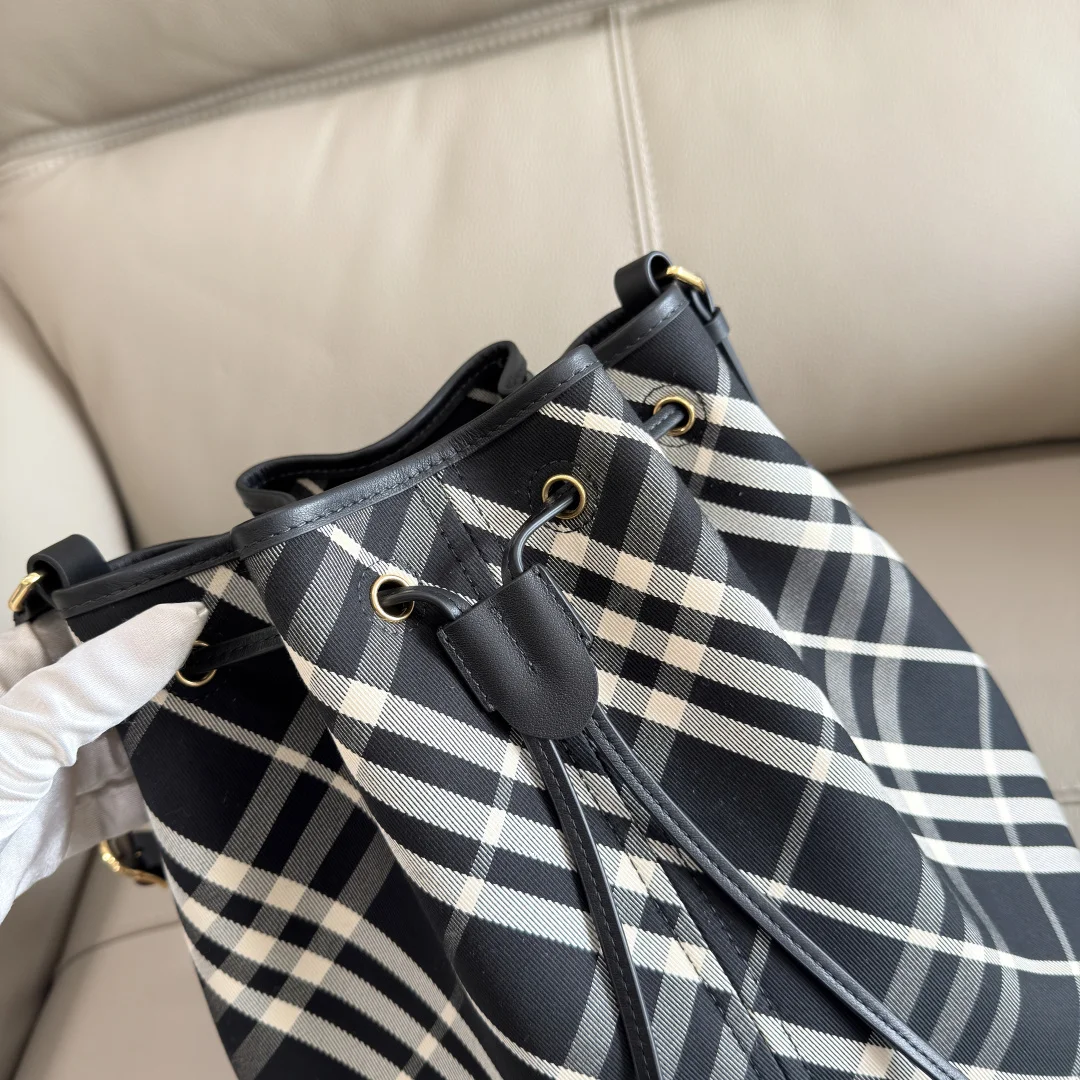 The top-grade B family s latest check pattern bag is crafted from cotton twill fabric with an unlined design, making it lightweight. It features smooth calfskin trim and an adju..