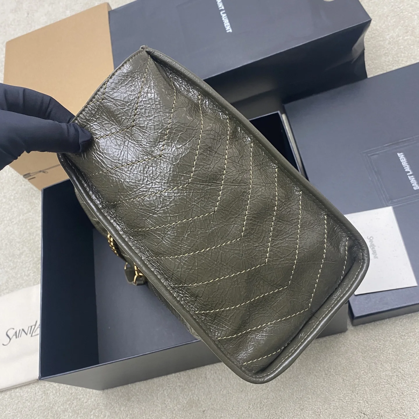 Oil wax green leather Saint Laurent Niki large shopping bag, black and gold color scheme is super textured! Oil wax cowhide material, natural wrinkles on the surface, soft and d..