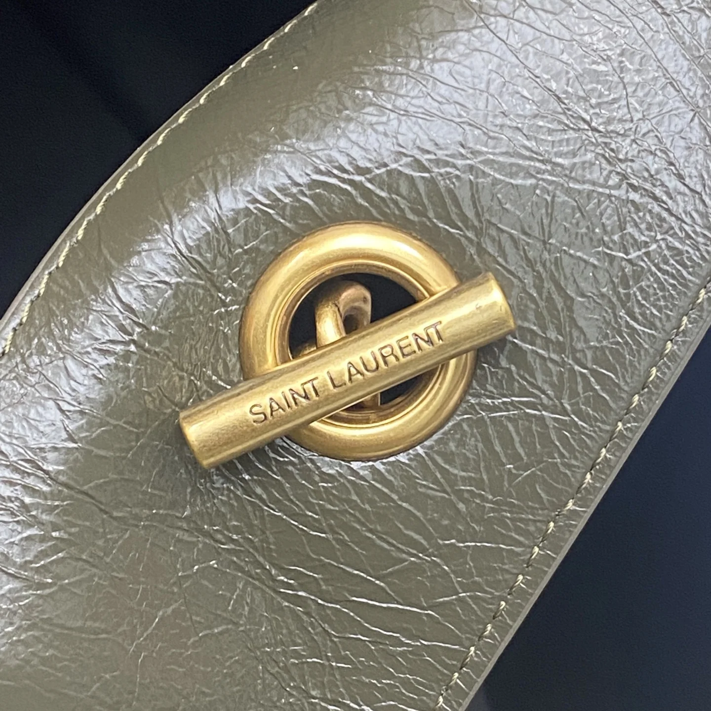 Oil wax green leather Saint Laurent Niki large shopping bag, black and gold color scheme is super textured! Oil wax cowhide material, natural wrinkles on the surface, soft and durable to the touch. Metal chain shoulder strap + YSL logo, retro and fashionable, lightweight and just the right capacity, suitable for commuting and going out! Internal magnetic snap button + zipper pocket, super convenient for storage, can be switched between hand-held and shoulder-carried, practical and versatile, is a popular model in the Niki series!