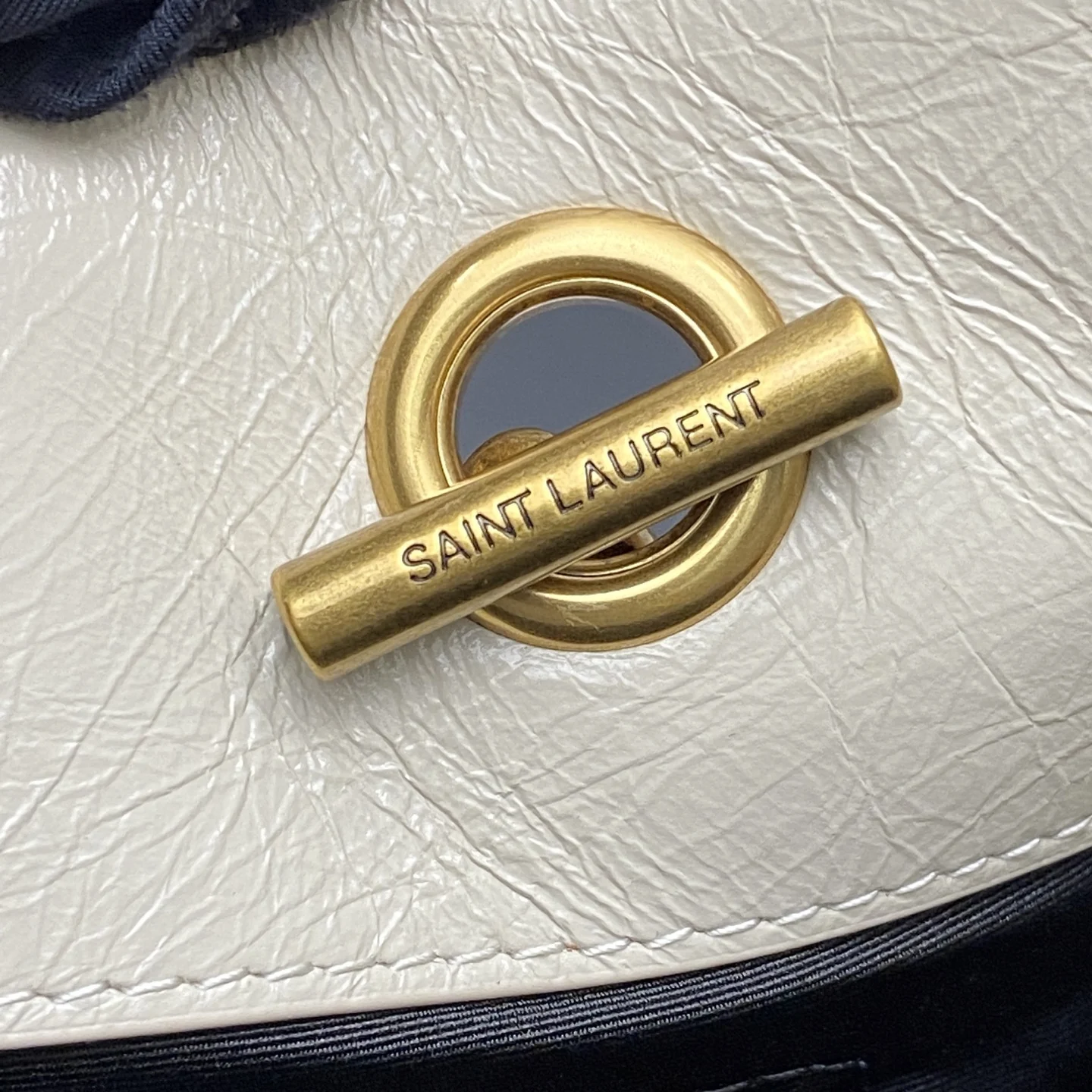 Oil wax milk white Saint Laurent Niki small shopping bag, black and gold color scheme is super textured! Oil wax cowhide material, natural wrinkles on the surface, soft and durable to the touch. Metal chain shoulder strap + YSL logo, retro and fashionable, lightweight and just the right capacity, suitable for commuting and going out! Internal magnetic snap button + zipper pocket, super convenient for storage, hand-held or shoulder-carried at will, practical and versatile, it is a popular model in the Niki series!