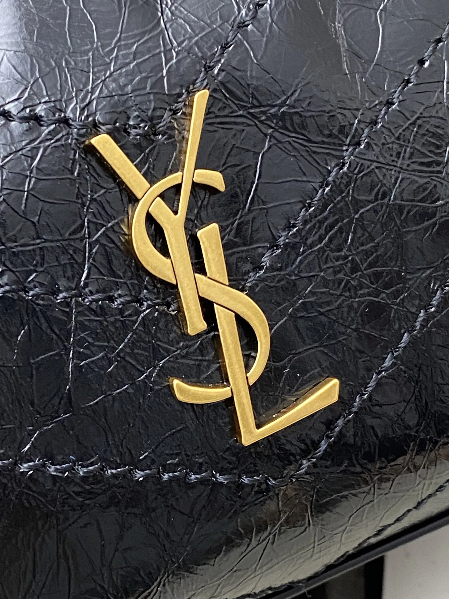 Oil wax black leather Saint Laurent Niki small shopping bag, black and gold color scheme is super textured! Oil wax cowhide material, natural wrinkles on the surface, soft and d..